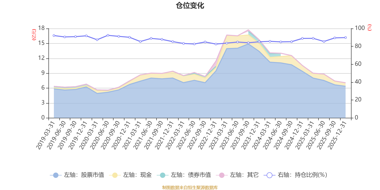 据定期报告数据统计,近三年平均股票仓位为86.36%,同类平均为72.57%。2020年上半年末基金达到92.38%的最高仓位,2022年末最低,为82.61%。