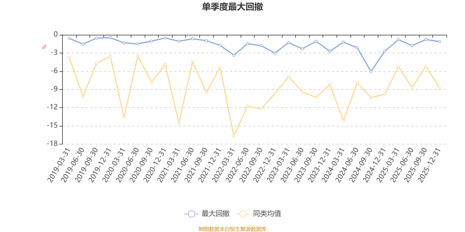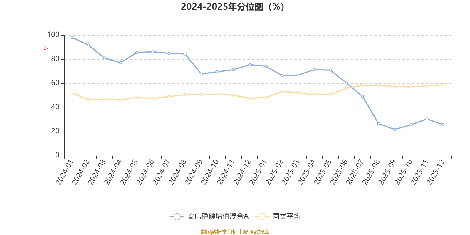 通过所选区间该基金净值增长率分位图,可以观察该基金与同类基金业绩比较情况。图为坐标原点到区间内某时点的净值增长率在同类基金中的分位数。