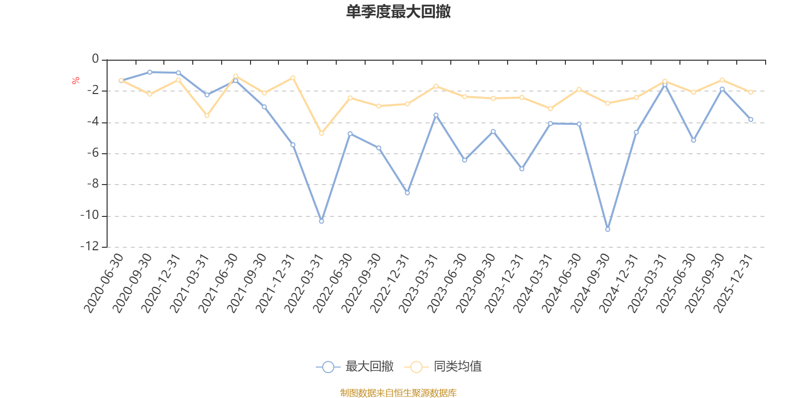 通过所选区间该基金净值增长率分位图,可以观察该基金与同类基金业绩比较情况。图为坐标原点到区间内某时点的净值增长率在同类基金中的分位数。
