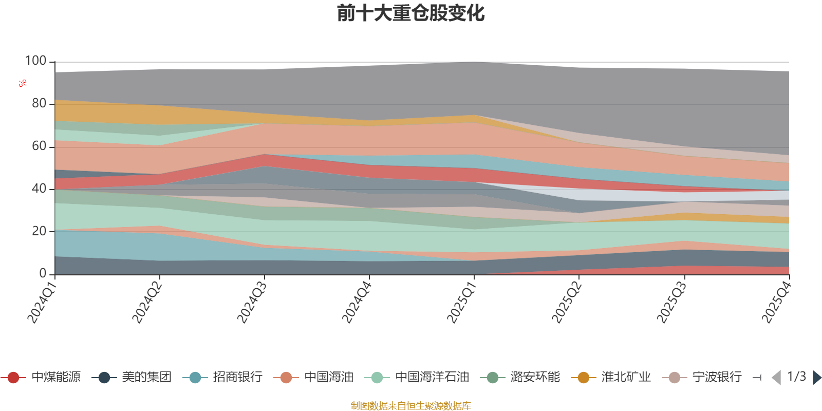 该基金持股集中度较高,近2年前十大重仓股集中度长期超过60%。截至2025年四季度末,基金重仓股分别是中国海洋石油、中国海外发展、美的集团、宁波银行、晋控煤业、华润置地、海尔智家、中煤能源、淮北矿业、兖煤澳大利亚、中国海油。