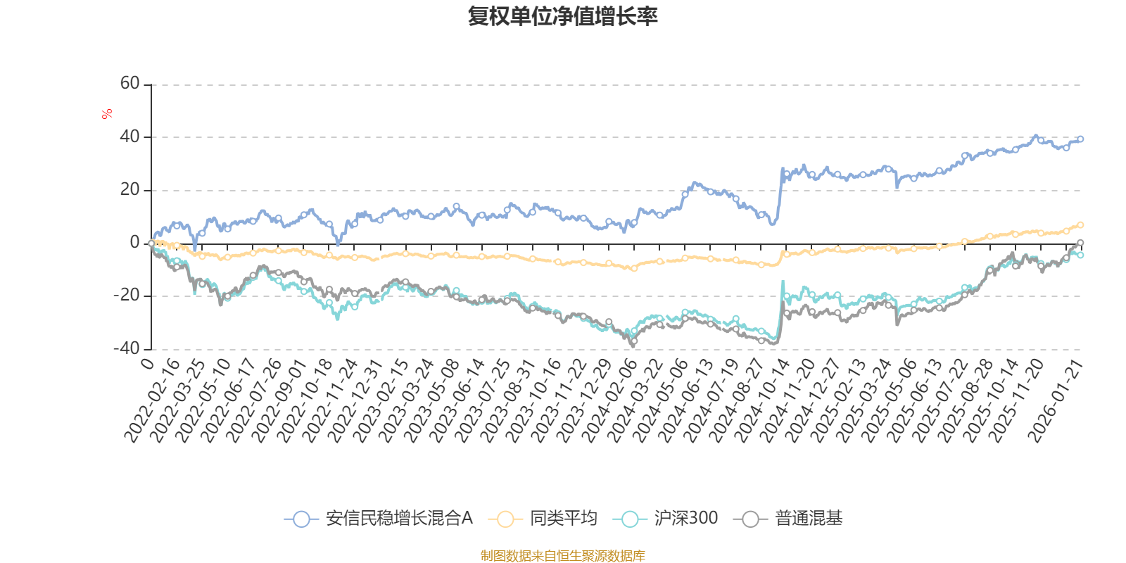 截至1月21日,安信民稳增长混合A近三个月复权单位净值增长率为2.05%,位于同类可比基金312/629;近半年复权单位净值增长率为6.00%,位于同类可比基金204/629;近一年复权单位净值增长率为10.96%,位于同类可比基金170/626;近三年复权单位净值增长率为22.97%,位于同类可比基金57/564。