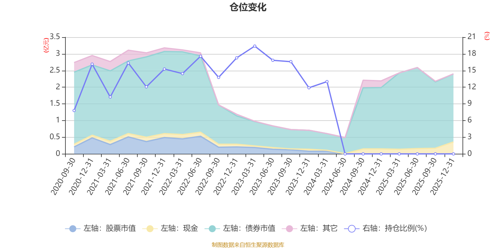 据定期报告数据统计,近三年平均股票仓位为6.48%,同类平均为19.19%。2023年一季度末基金达到19.4%的最高仓位,2020年三季度末最低,为7.81%。