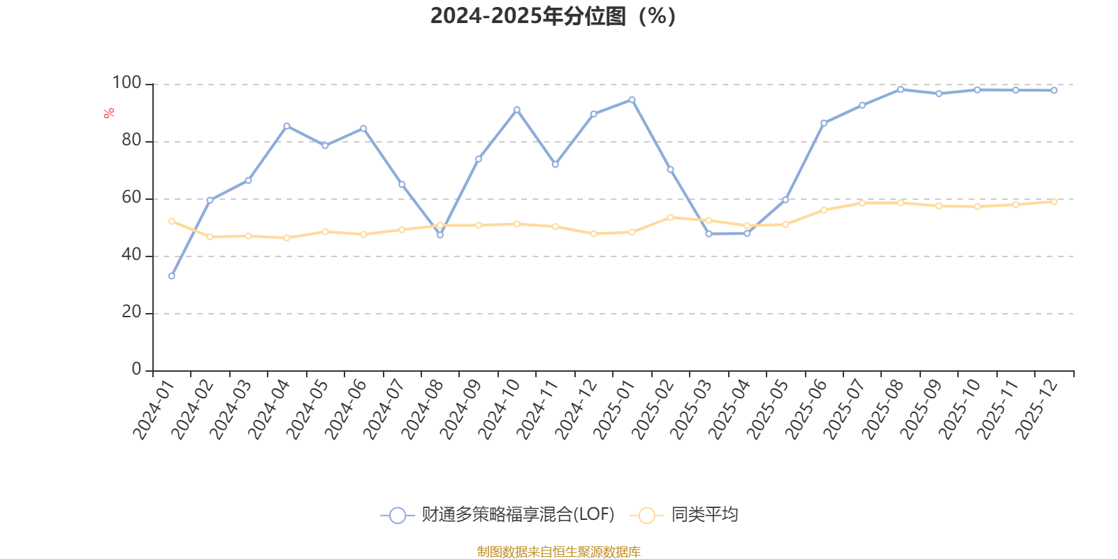 通过所选区间该基金净值增长率分位图,可以观察该基金与同类基金业绩比较情况。图为坐标原点到区间内某时点的净值增长率在同类基金中的分位数。