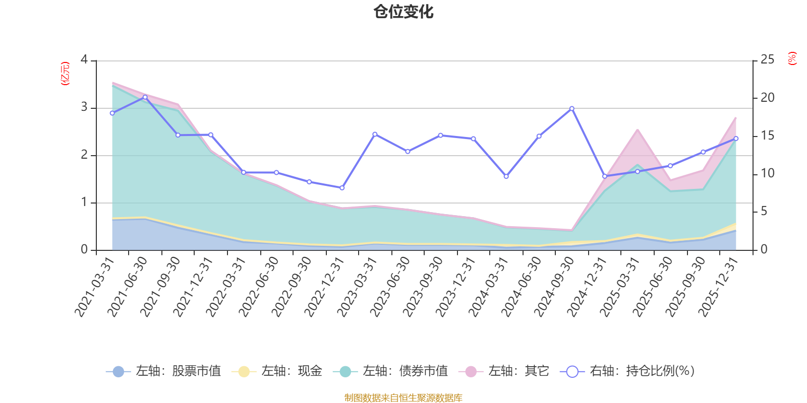 基金管理人在四季报中表示,本季度权益组合风格保持稳定,市值维度和中盘股较为接近,仓位在季末有所提升。债券方面主要以票息策略为主,维持偏低久期。