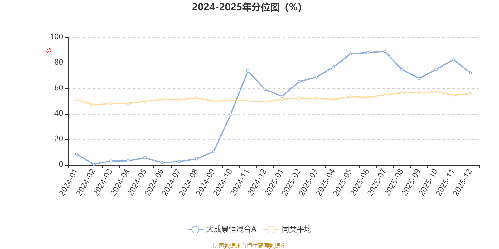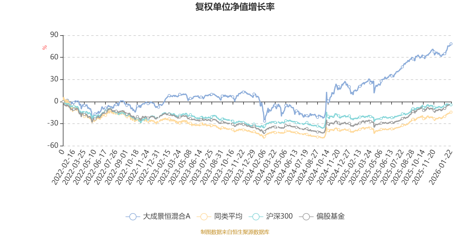 截至1月22日,大成景恒混合A近三个月复权单位净值增长率为10.29%,位于同类可比基金276/621;近半年复权单位净值增长率为21.31%,位于同类可比基金374/621;近一年复权单位净值增长率为55.89%,位于同类可比基金150/613;近三年复权单位净值增长率为79.63%,位于同类可比基金24/535。