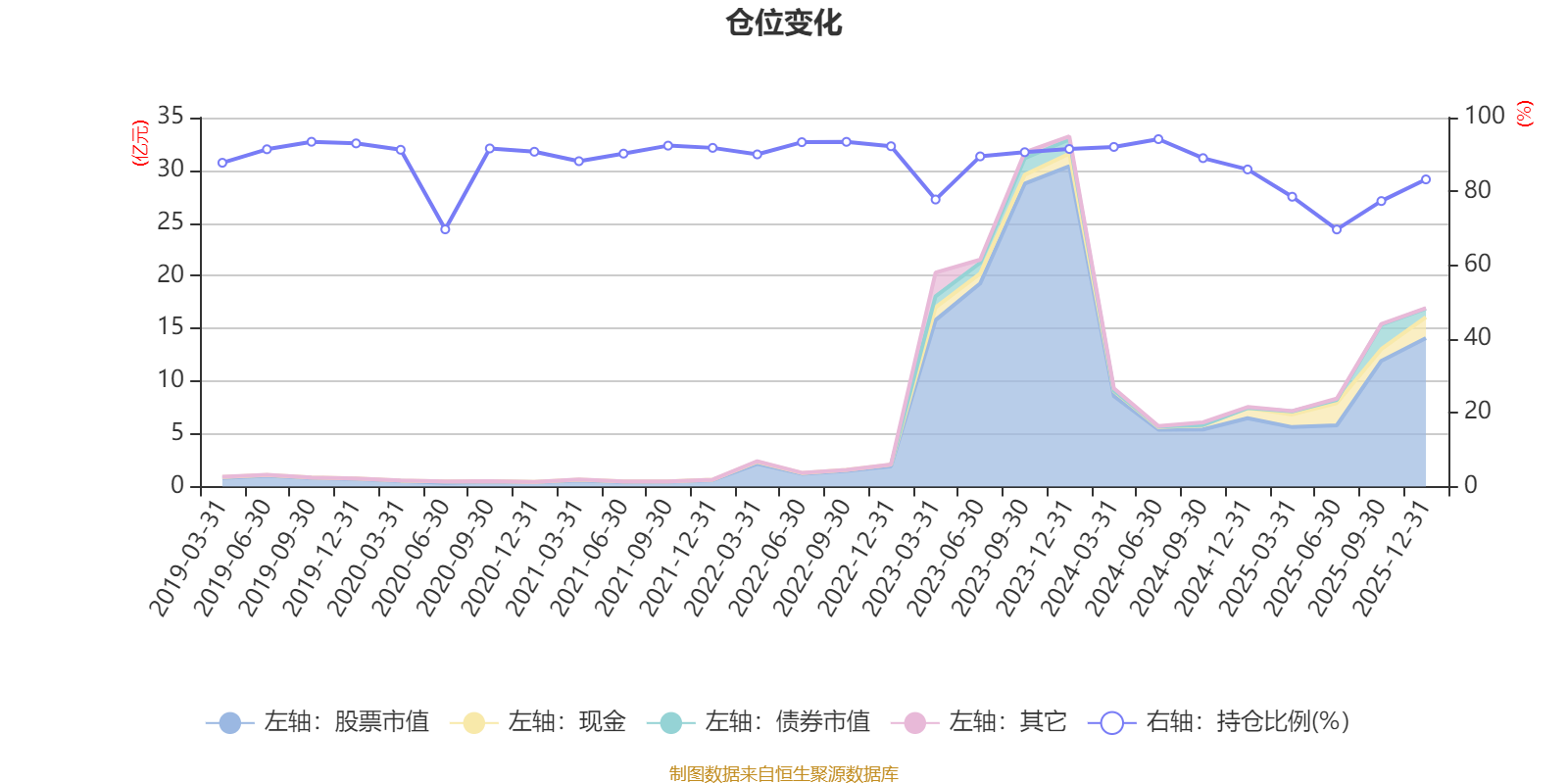 据定期报告数据统计,近三年平均股票仓位为84.95%,同类平均为85.83%。2024年上半年末基金达到94.16%的最高仓位,2025年上半年末最低,为69.68%。