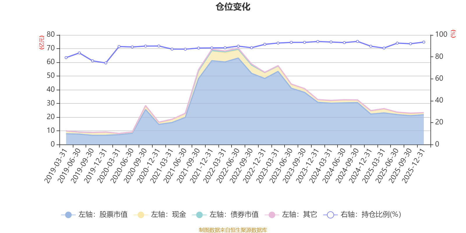 据定期报告数据统计,近三年平均股票仓位为92.47%,同类平均为72.57%。2024年三季度末基金达到94.11%的最高仓位,2019年末最低,为74.47%。
