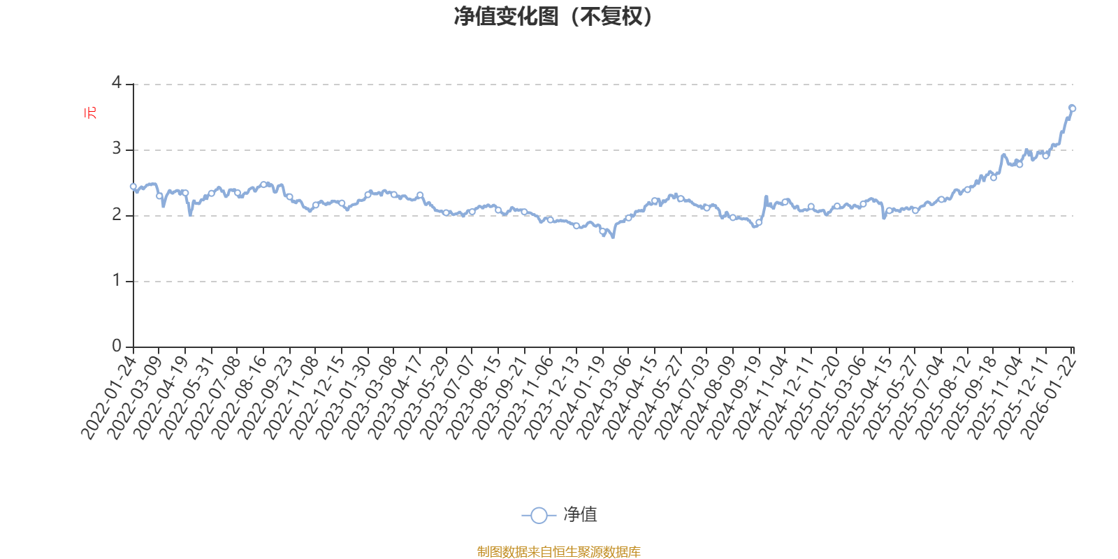 该基金持股集中度较高,近2年前十大重仓股集中度长期超过60%。截至2025年四季度末,基金十大重仓股分别是山东黄金、兴业银锡、锡业股份、华泰证券、中金黄金、中国太保、赛轮轮胎、中曼石油、中国东航、海南橡胶。