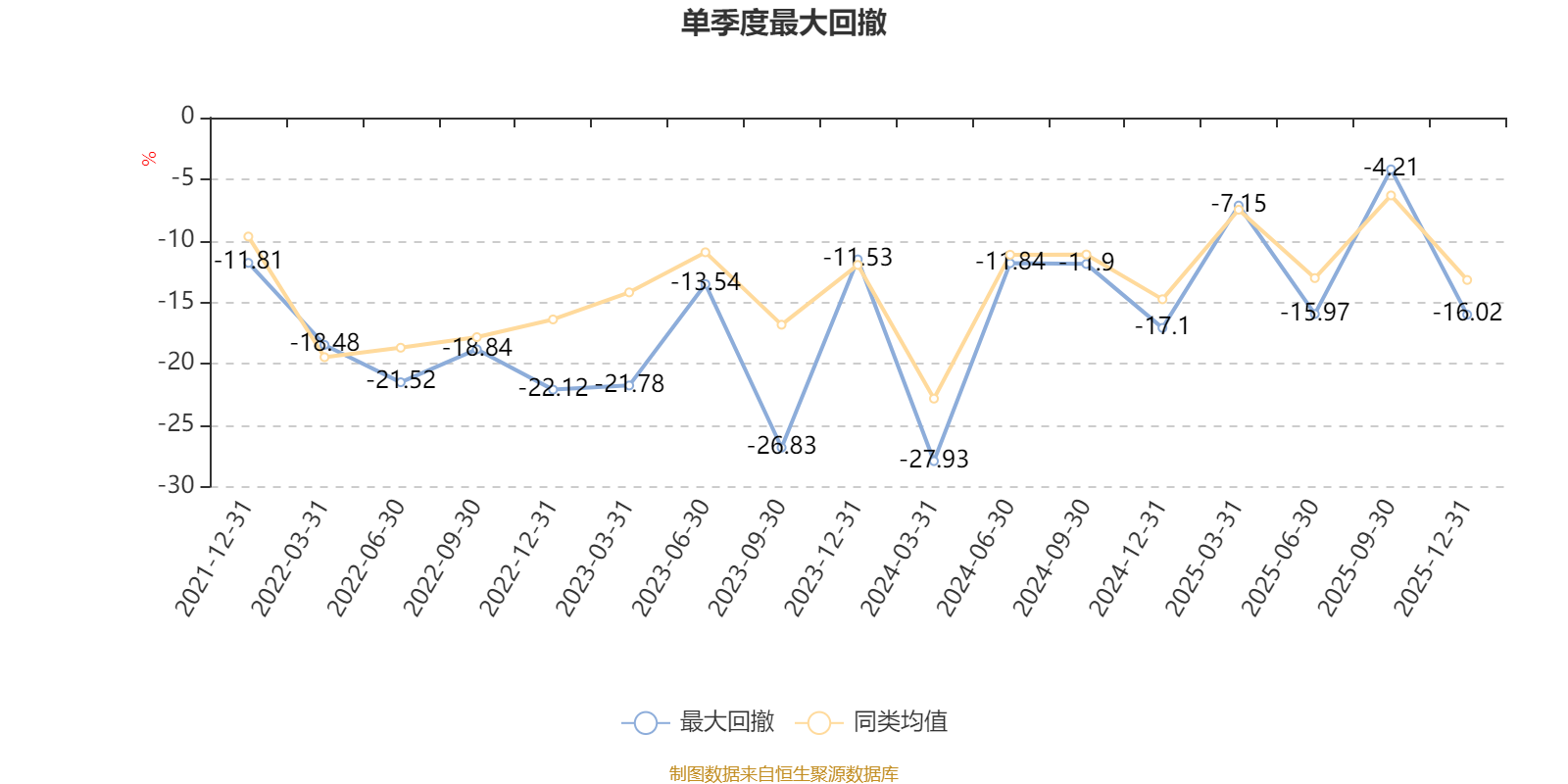 截至1月22日,基金近三年最大回撤为58.68%,同类可比基金排名64/66。单季度最大回撤出现在2024年一季度,为27.93%。