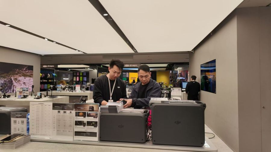 (图:港客正在大疆门店挑选产品,李金萍/摄)