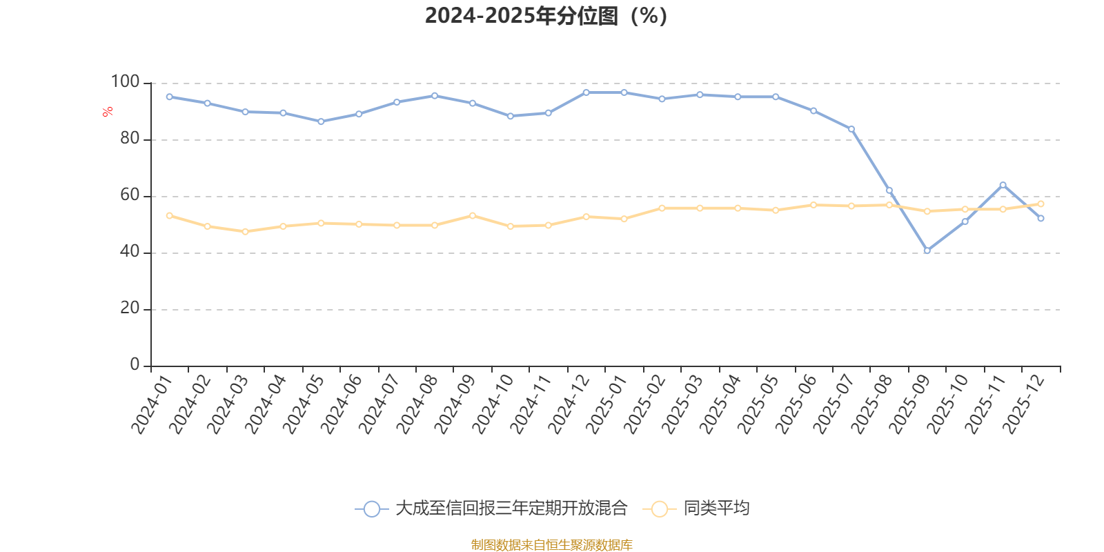 通过所选区间该基金净值增长率分位图,可以观察该基金与同类基金业绩比较情况。图为坐标原点到区间内某时点的净值增长率在同类基金中的分位数。