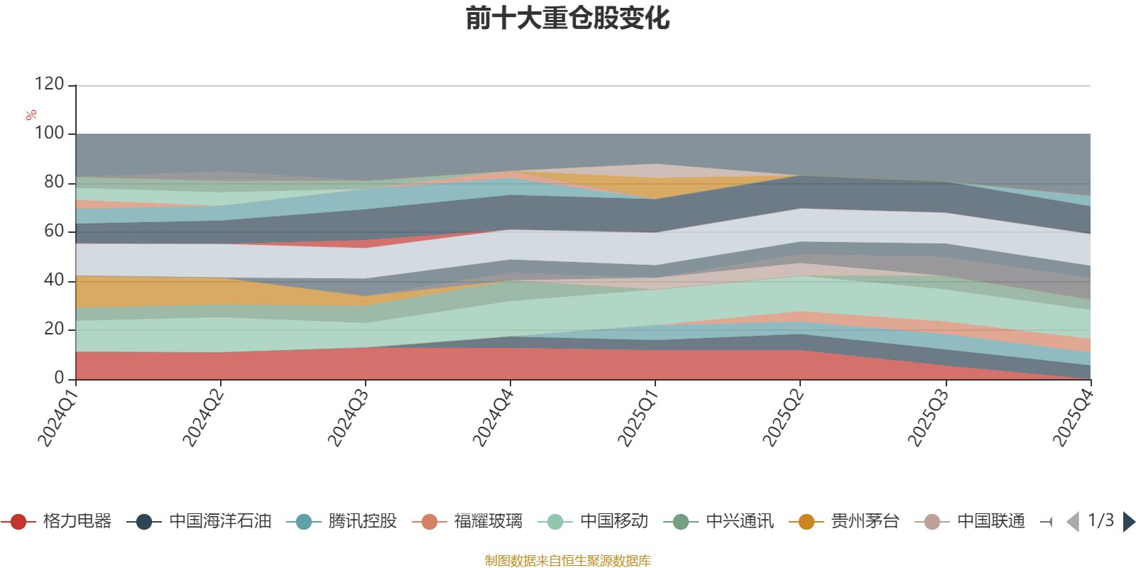 该基金持股集中度较高,近2年前十大重仓股集中度长期超过60%。截至2025年四季度末,基金十大重仓股分别是豪迈科技、中国移动、美的集团、海尔智家、中国海洋石油、福耀玻璃、腾讯控股、华域汽车、浙江龙盛、中兴通讯。
