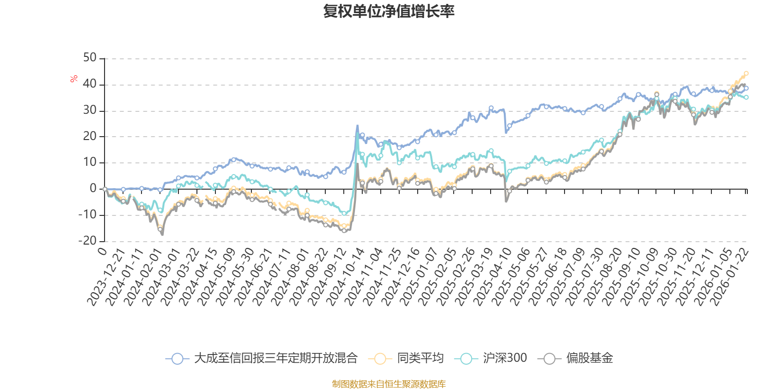截至1月22日,大成至信回报三年定期开放混合近三个月复权单位净值增长率为3.91%,位于同类可比基金211/265;近半年复权单位净值增长率为5.15%,位于同类可比基金249/265;近一年复权单位净值增长率为14.28%,位于同类可比基金253/265。