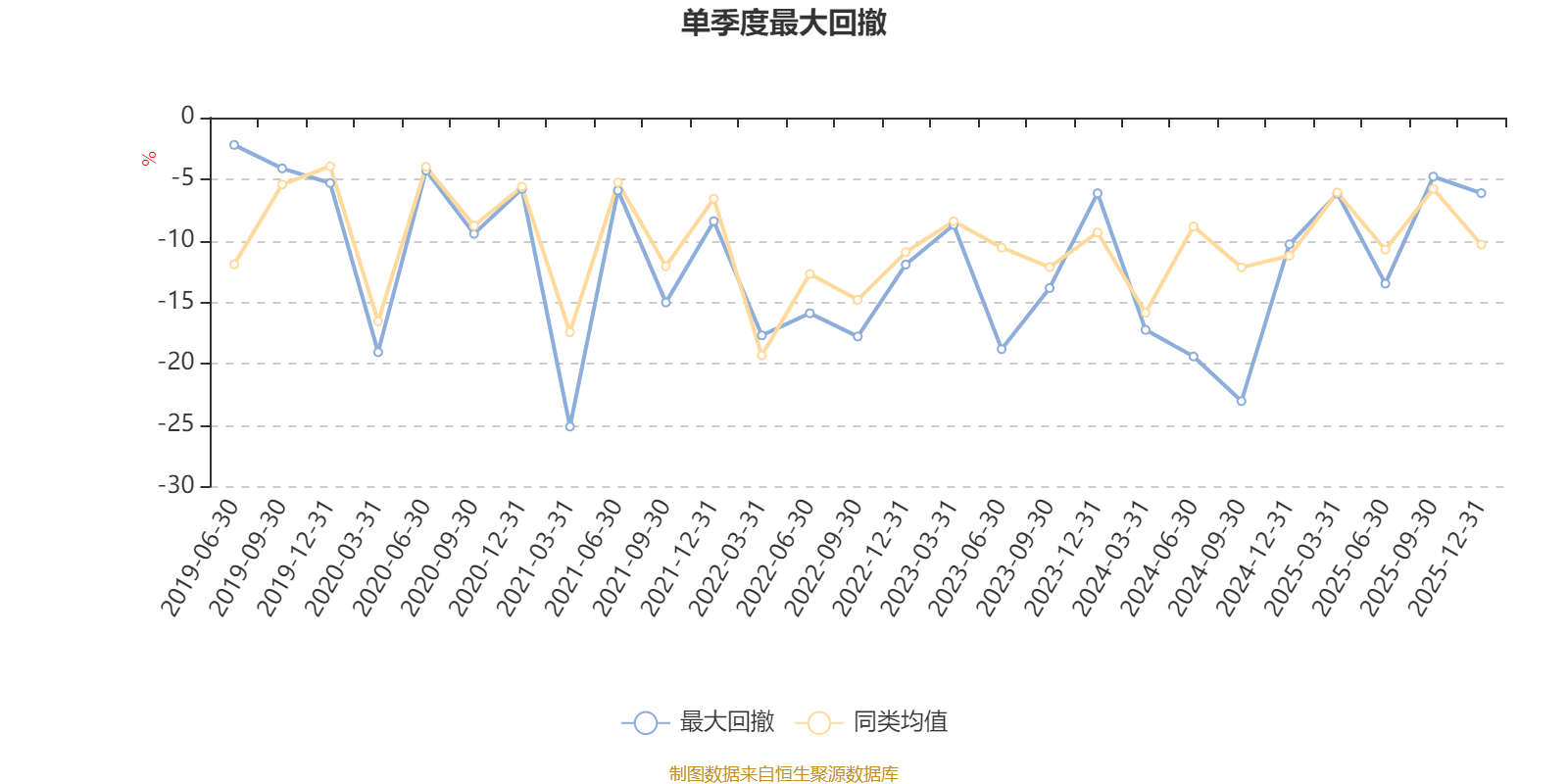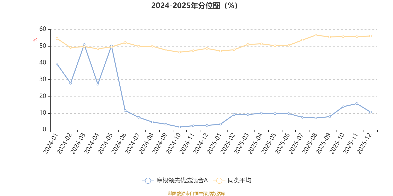 通过所选区间该基金净值增长率分位图,可以观察该基金与同类基金业绩比较情况。图为坐标原点到区间内某时点的净值增长率在同类基金中的分位数。