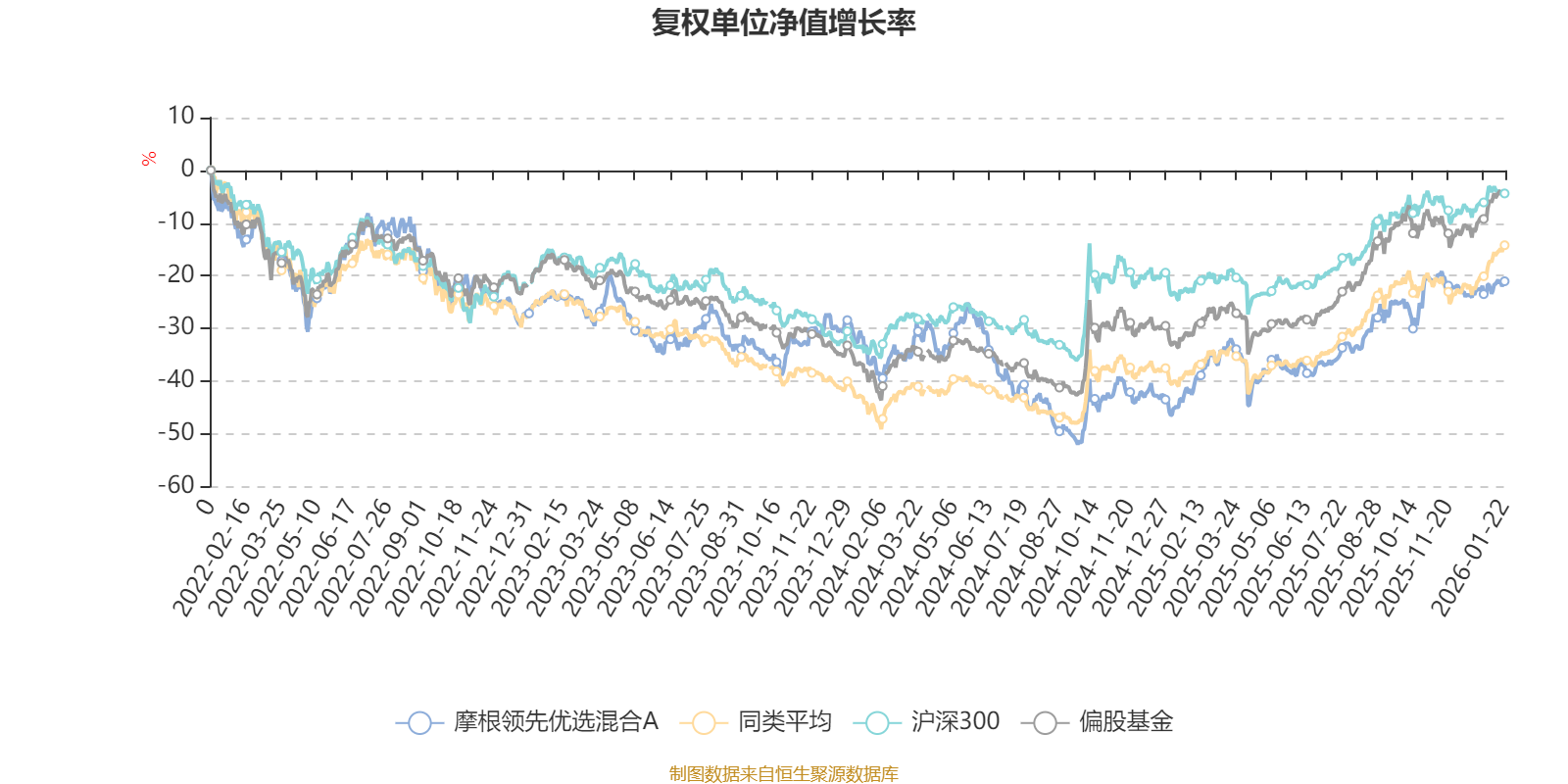 截至1月22日,摩根领先优选混合A近三个月复权单位净值增长率为6.13%,位于同类可比基金453/689;近半年复权单位净值增长率为19.02%,位于同类可比基金421/689;近一年复权单位净值增长率为35.05%,位于同类可比基金361/673;近三年复权单位净值增长率为3.16%,位于同类可比基金269/396。