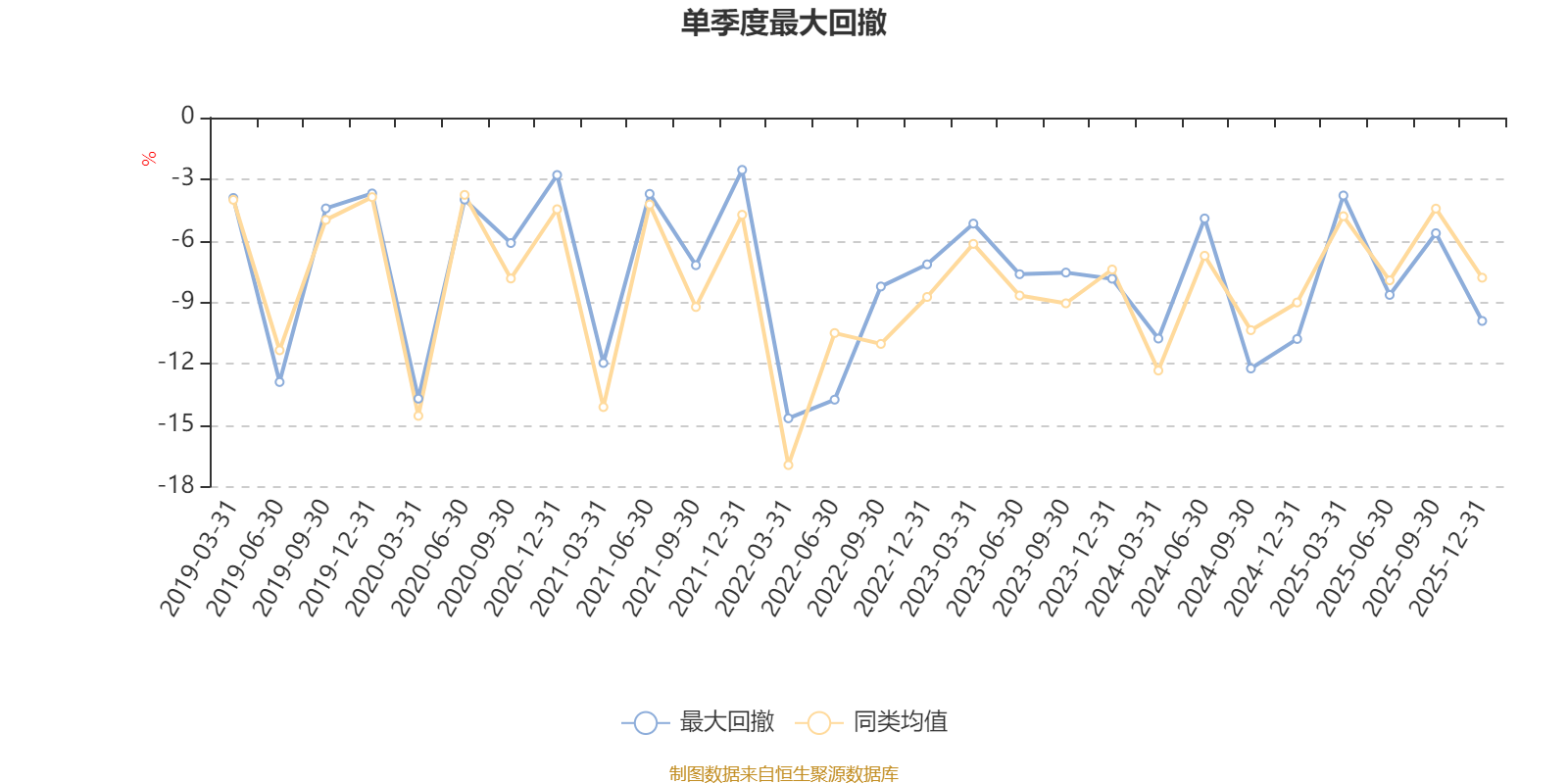 截至1月22日,基金近三年最大回撤为25.97%,同类可比基金排名57/120。单季度最大回撤出现在2022年一季度,为14.67%。
