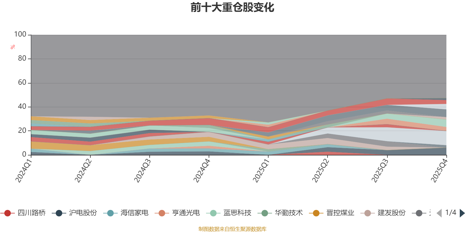 截至2025年四季度末,基金十大重仓股分别是新易盛、紫金矿业、中际旭创、沪电股份、盛屯矿业、工业富联、宁德时代、中金黄金、东阳光、北方华创。