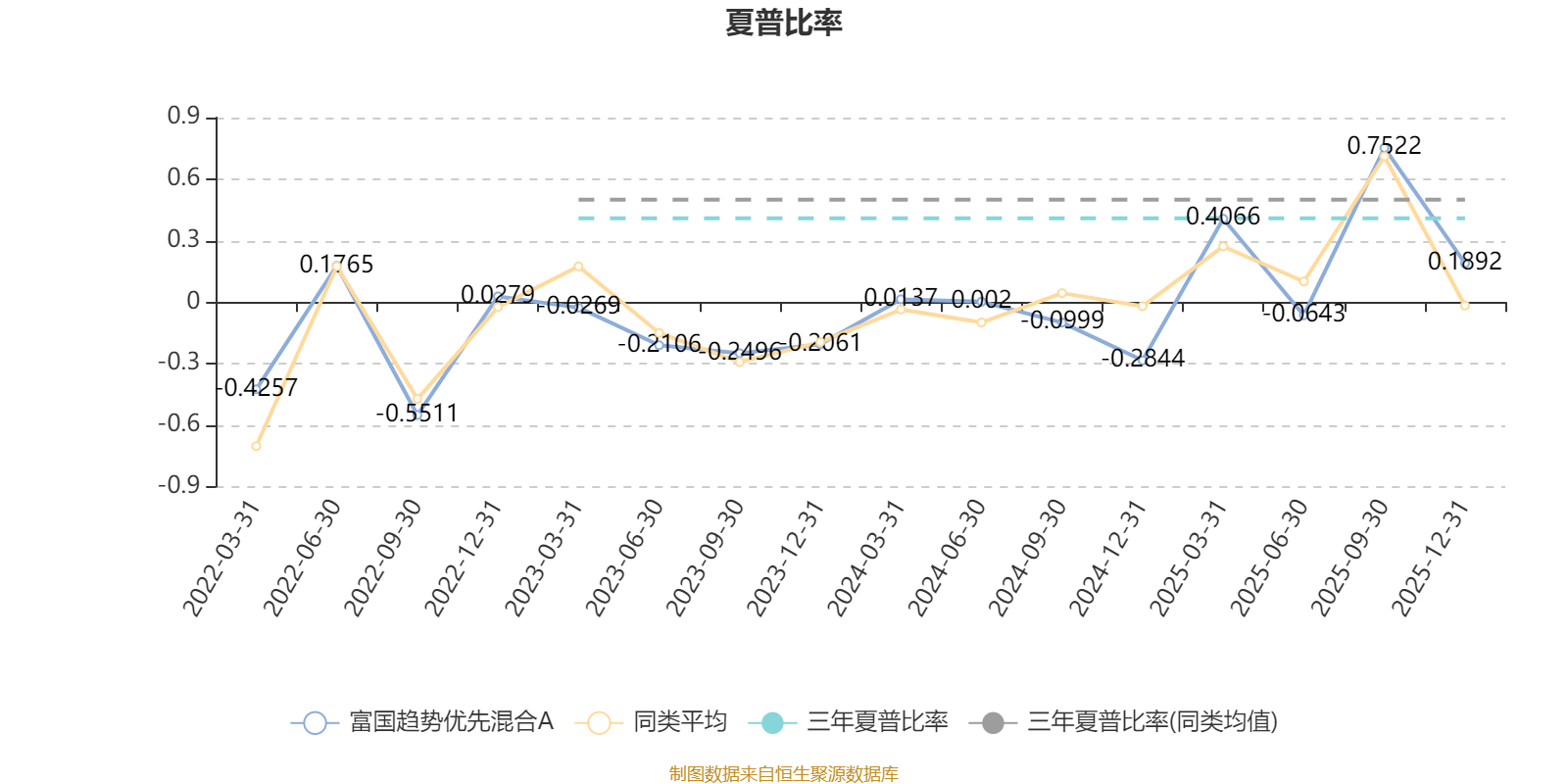 截至12月31日,基金近三年夏普比率为0.4088,位于同类可比基金323/526。