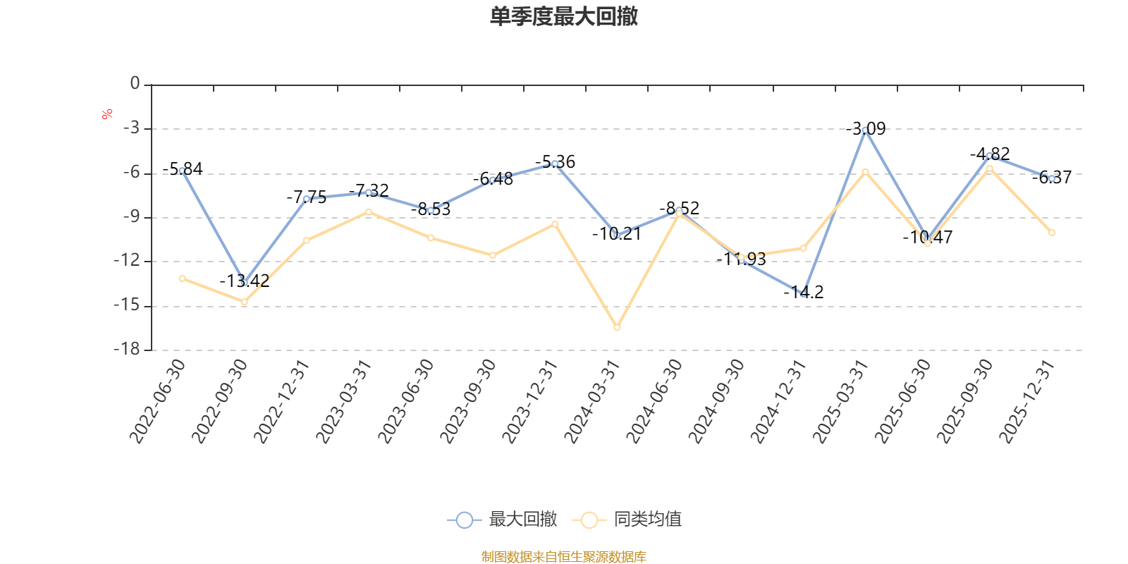 截至1月22日,基金近三年最大回撤为27.03%,同类可比基金排名75/525。单季度最大回撤出现在2024年四季度,为14.2%。
