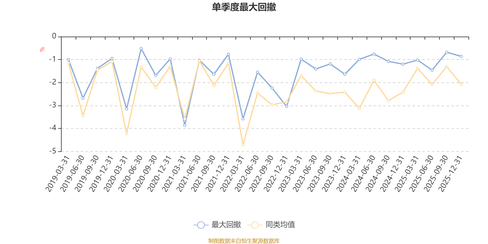 通过所选区间该基金净值增长率分位图,可以观察该基金与同类基金业绩比较情况。图为坐标原点到区间内某时点的净值增长率在同类基金中的分位数。