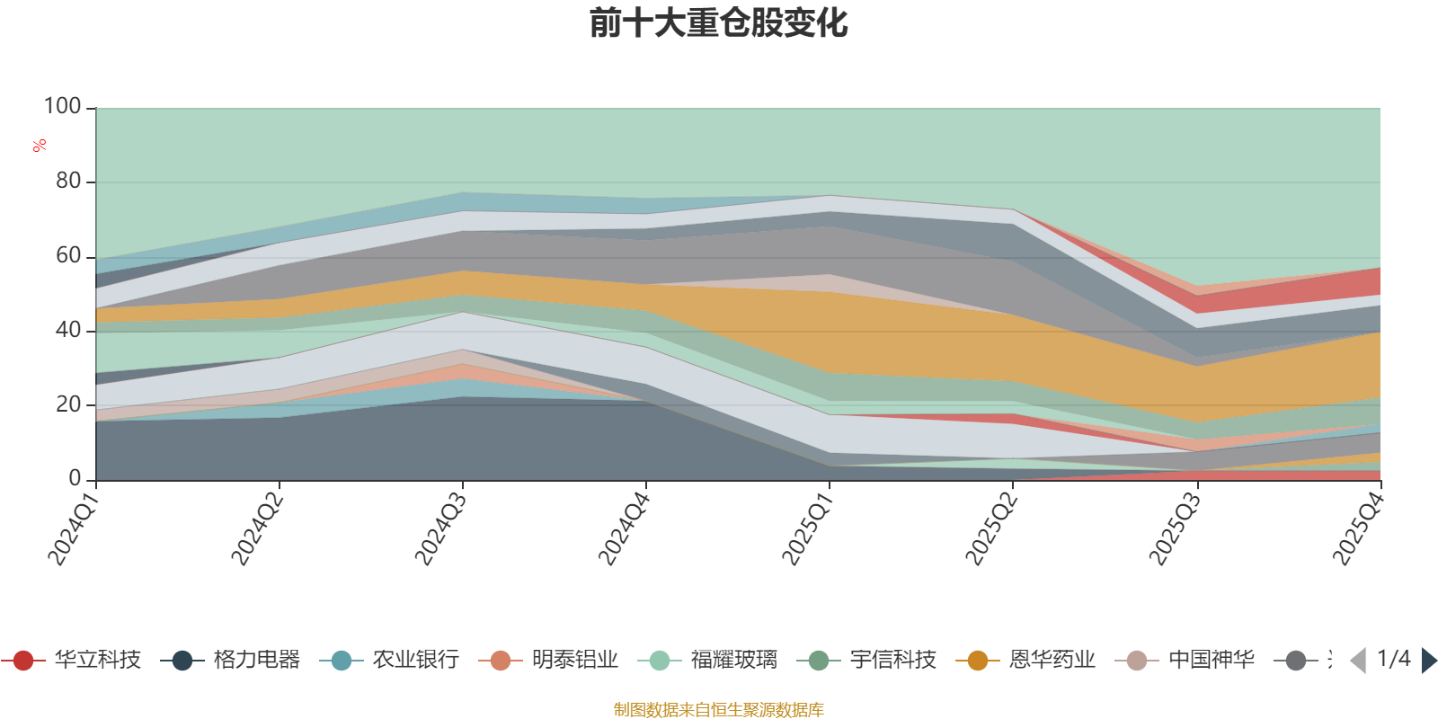 该基金持股集中度较高。截至2025年四季度末,基金十大重仓股分别是美的集团、锡业股份、齐鲁银行、豪迈科技、兴业银锡、招商轮船、恩华药业、华立科技、山东黄金、宇信科技。