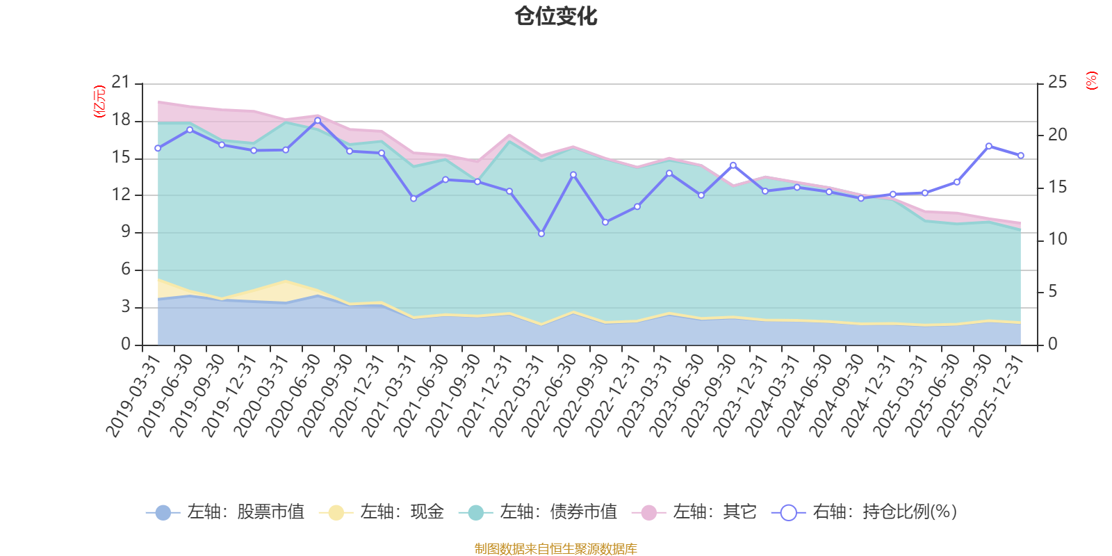 据定期报告数据统计,近三年平均股票仓位为15.67%,同类平均为19.2%。2020年上半年末基金达到21.46%的最高仓位,2022年一季度末最低,为10.64%。