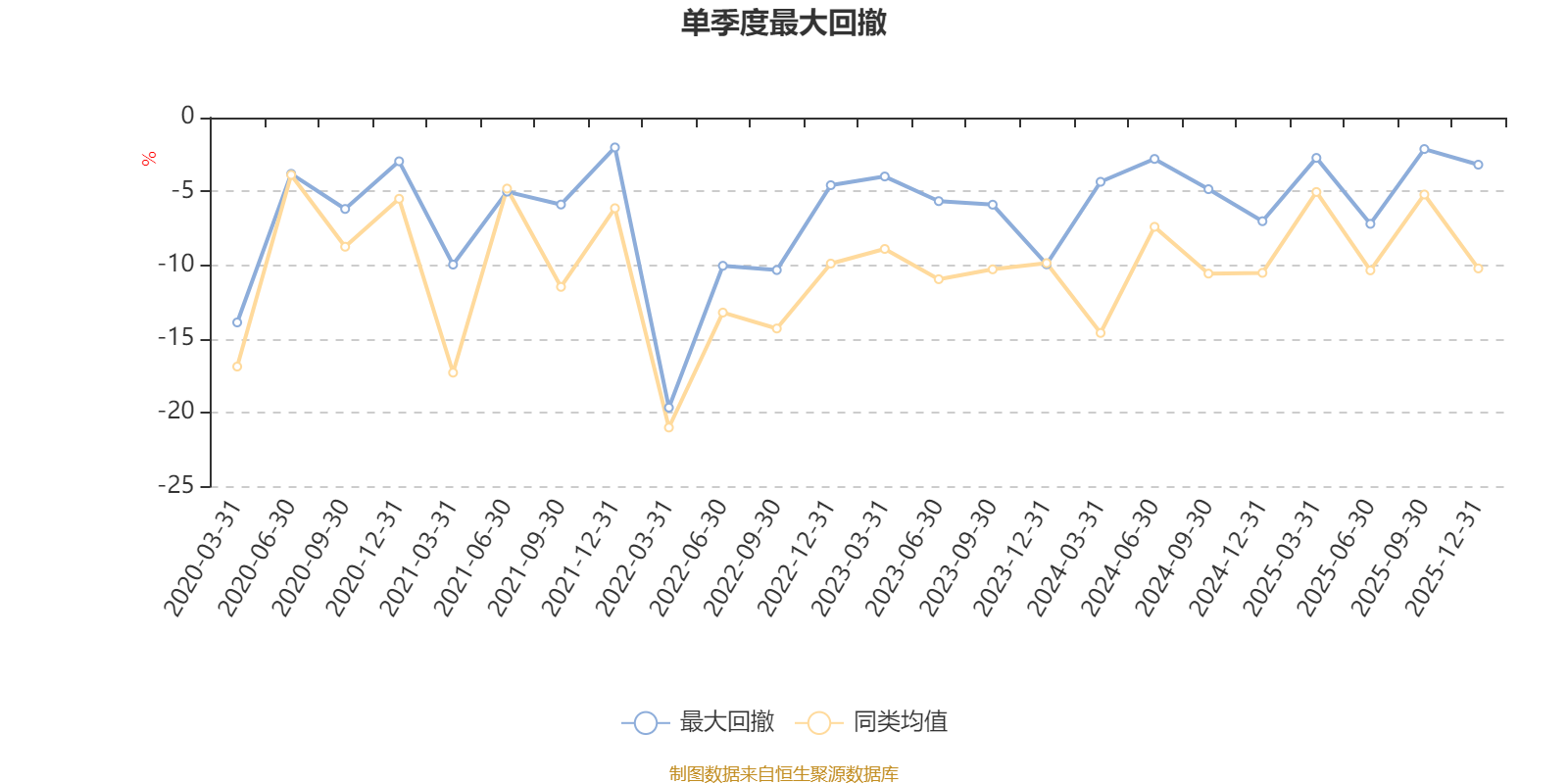 截至1月22日,基金近三年最大回撤为13.02%,同类可比基金排名2/124。单季度最大回撤出现在2022年一季度,为19.65%。