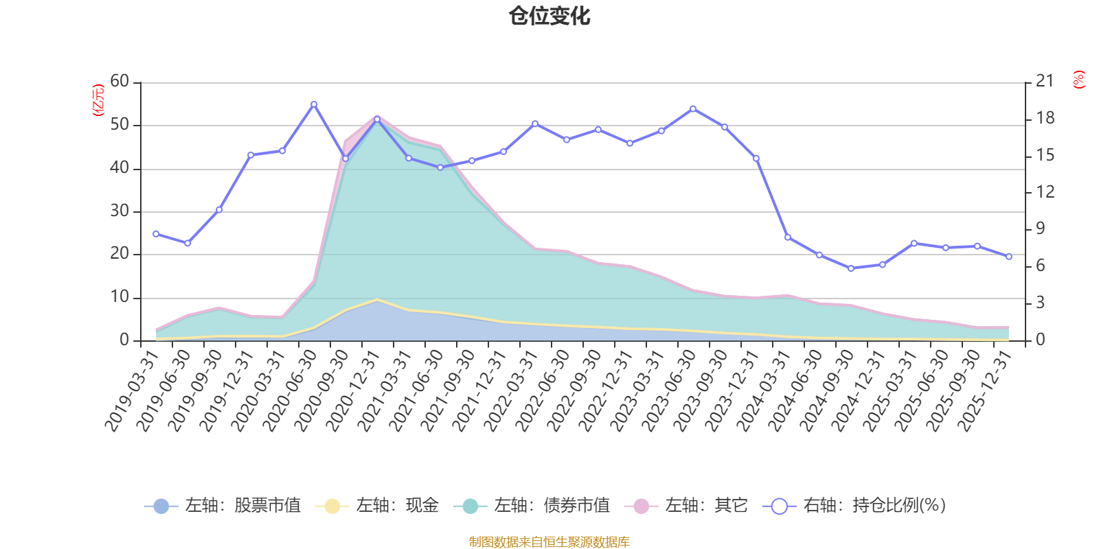 据定期报告数据统计,近三年平均股票仓位为10.46%,同类平均为72.57%。2020年上半年末基金达到19.22%的最高仓位,2024年三季度末最低,为5.88%。