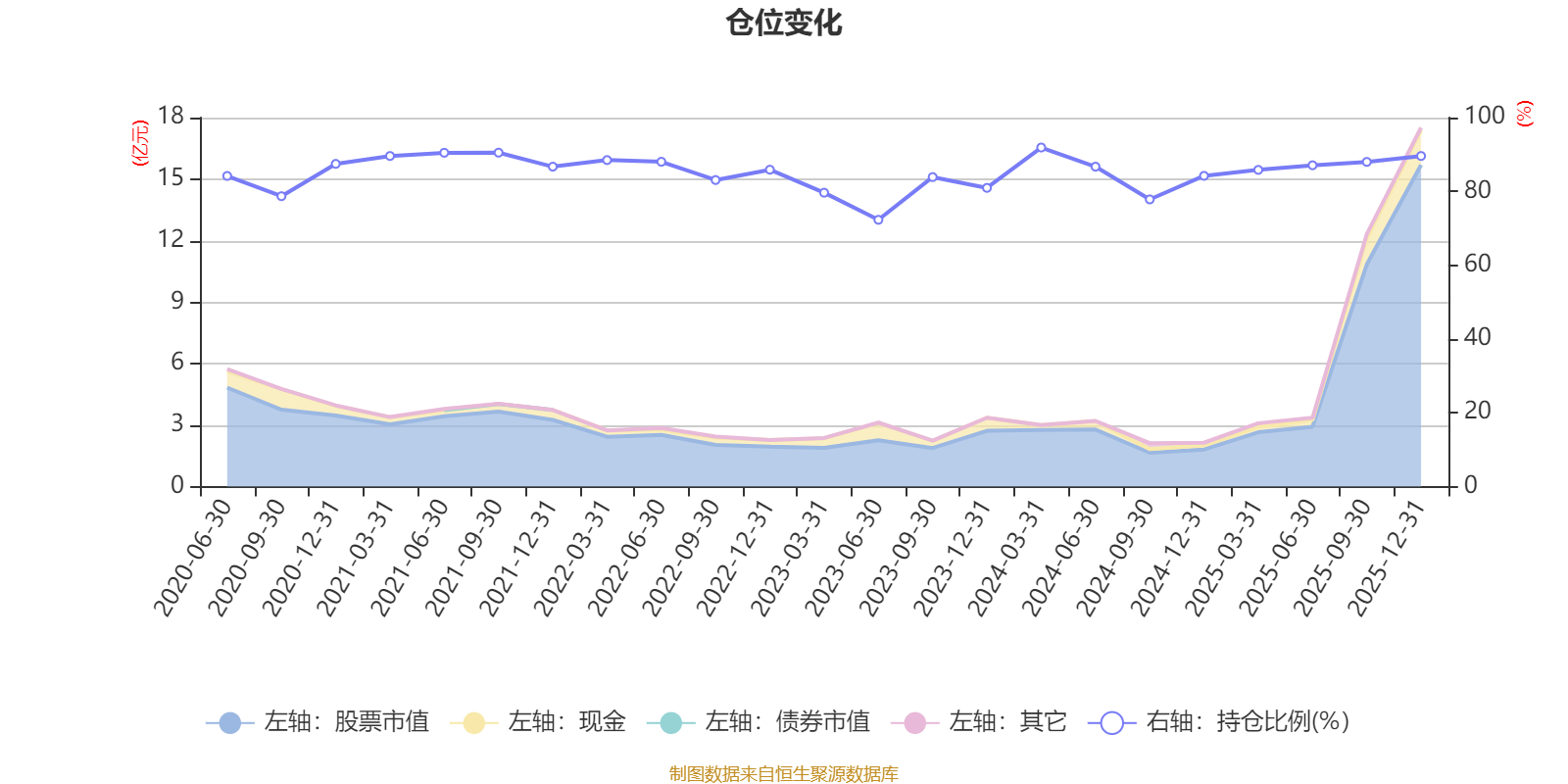 据定期报告数据统计,近三年平均股票仓位为83.99%,同类平均为86.9%。2024年一季度末基金达到91.89%的最高仓位,2023年上半年末最低,为72.3%。