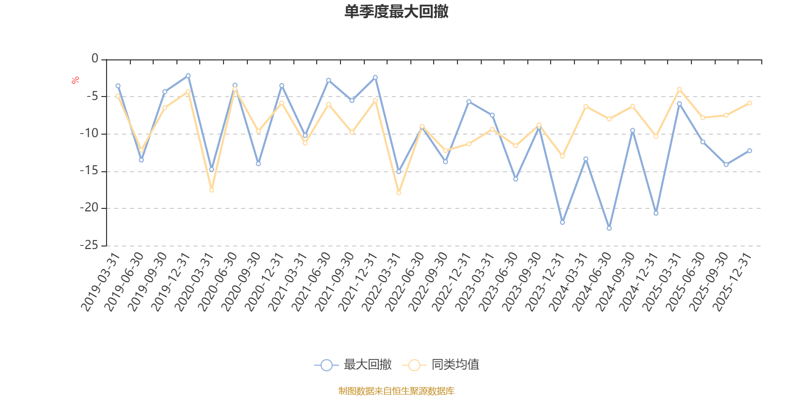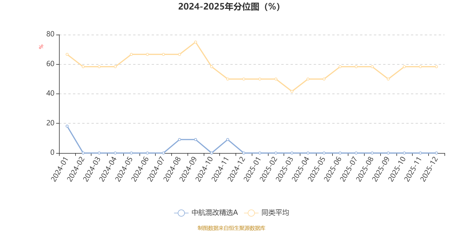 通过所选区间该基金净值增长率分位图,可以观察该基金与同类基金业绩比较情况。图为坐标原点到区间内某时点的净值增长率在同类基金中的分位数。