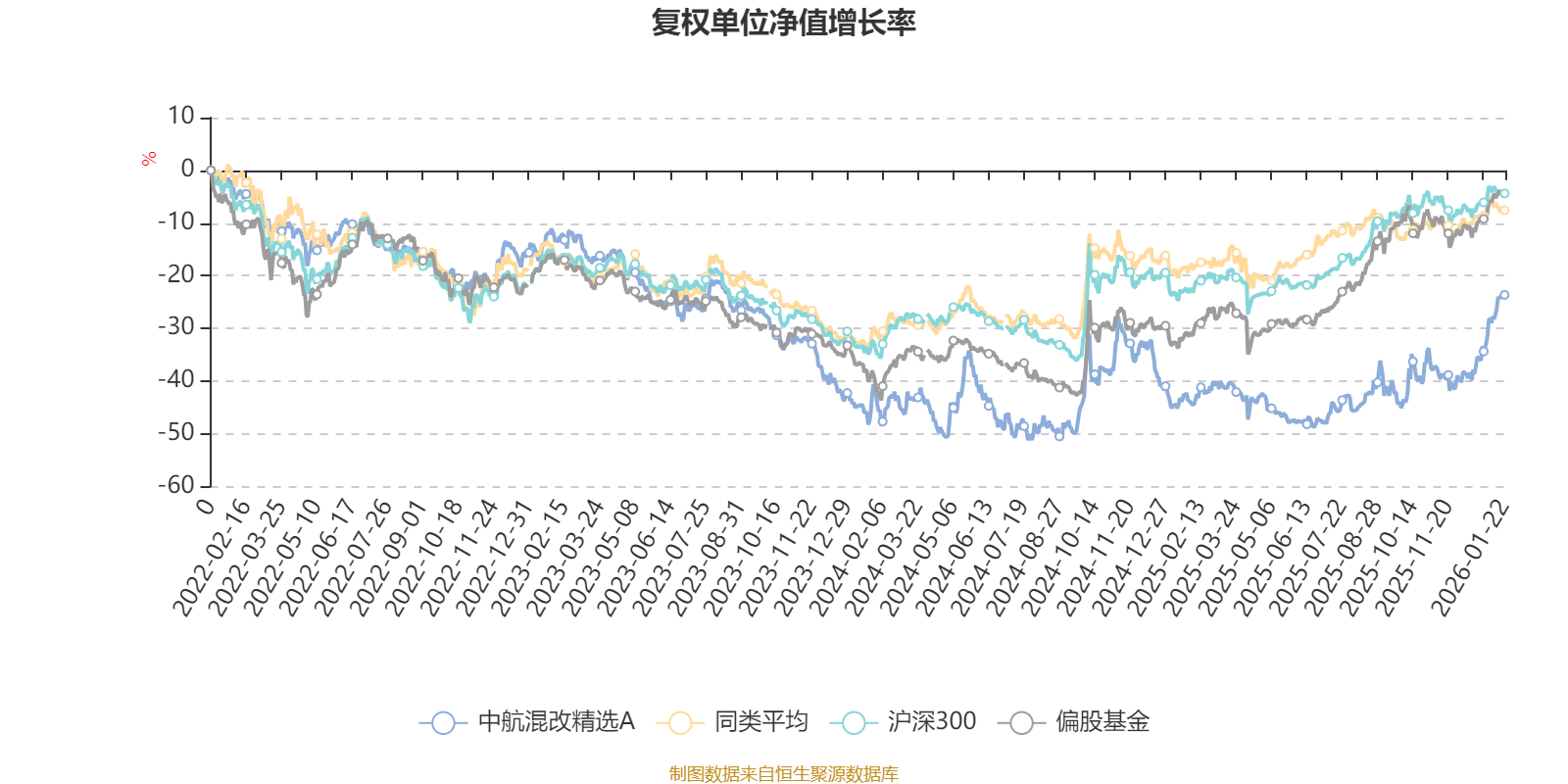 截至1月22日,中航混改精选A近三个月复权单位净值增长率为26.93%,位于同类可比基金1/16;近半年复权单位净值增长率为35.44%,位于同类可比基金1/16;近一年复权单位净值增长率为35.21%,位于同类可比基金1/14;近三年复权单位净值增长率为-13.14%,位于同类可比基金11/12。