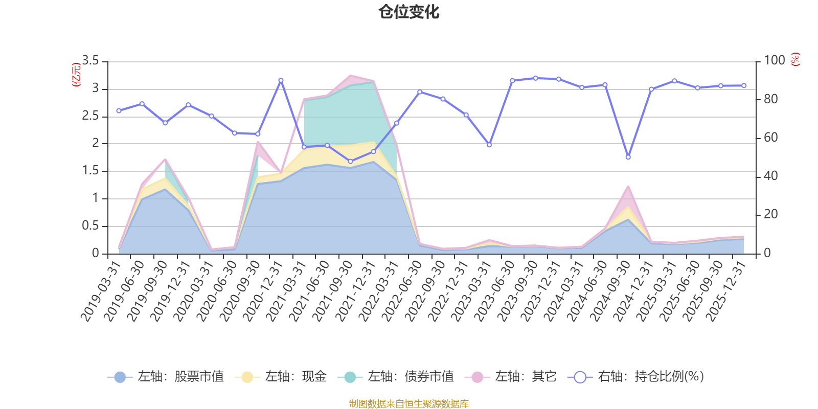 据定期报告数据统计,近三年平均股票仓位为82.46%,同类平均为87.05%。2023年三季度末基金达到91.29%的最高仓位,2021年三季度末最低,为48.05%。