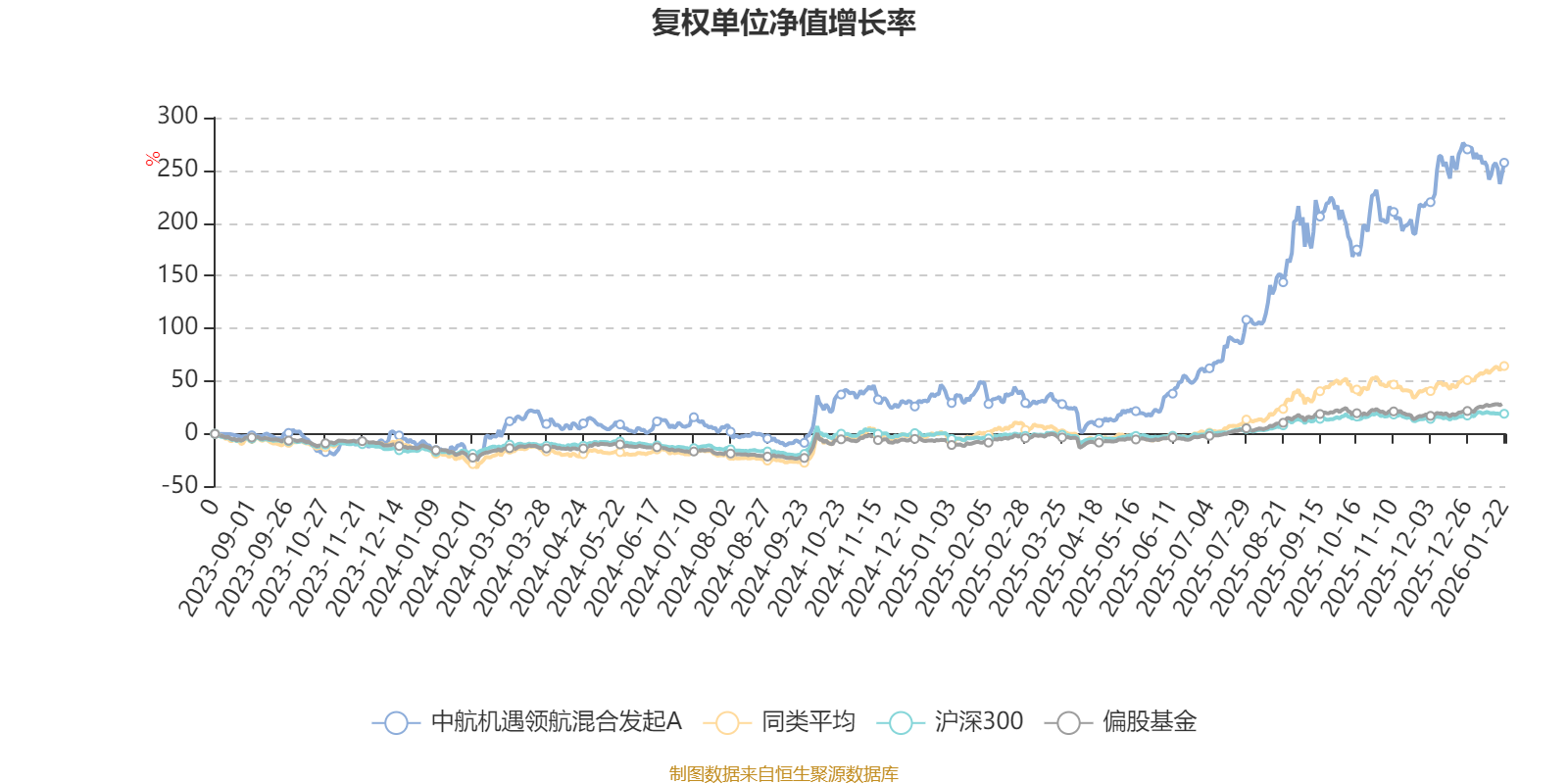 截至1月22日,中航机遇领航混合发起A近三个月复权单位净值增长率为20.23%,位于同类可比基金48/229;近半年复权单位净值增长率为90.10%,位于同类可比基金5/229;近一年复权单位净值增长率为138.92%,位于同类可比基金4/222。
