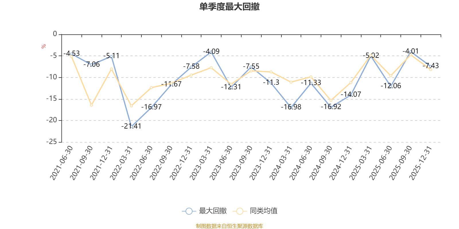 截至1月22日,基金近三年最大回撤为28.65%,同类可比基金排名13/29。单季度最大回撤出现在2022年一季度,为21.41%。