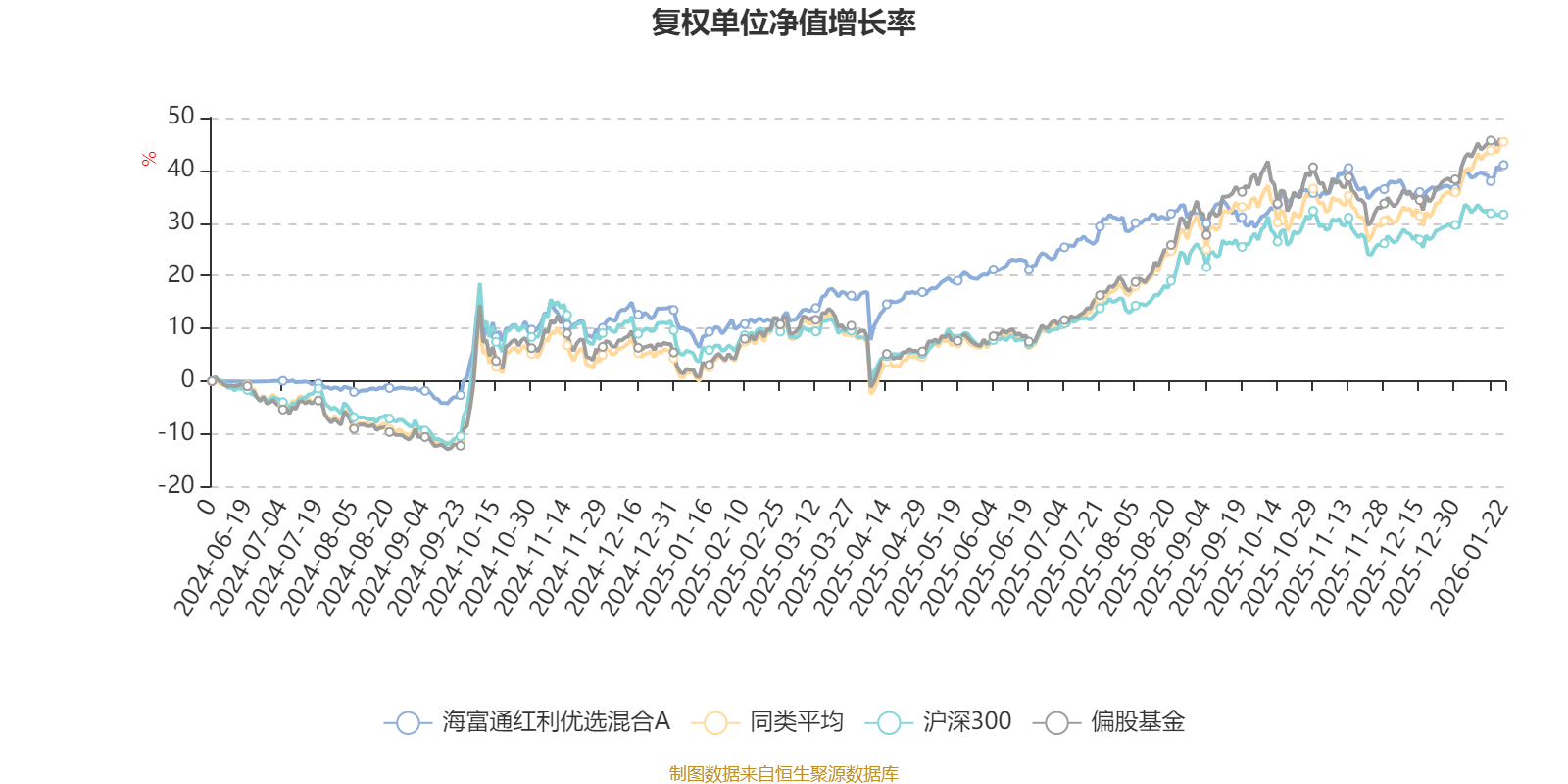 截至1月22日,海富通红利优选混合A近三个月复权单位净值增长率为4.34%,位于同类可比基金508/689;近半年复权单位净值增长率为7.79%,位于同类可比基金586/689;近一年复权单位净值增长率为29.37%,位于同类可比基金447/673。