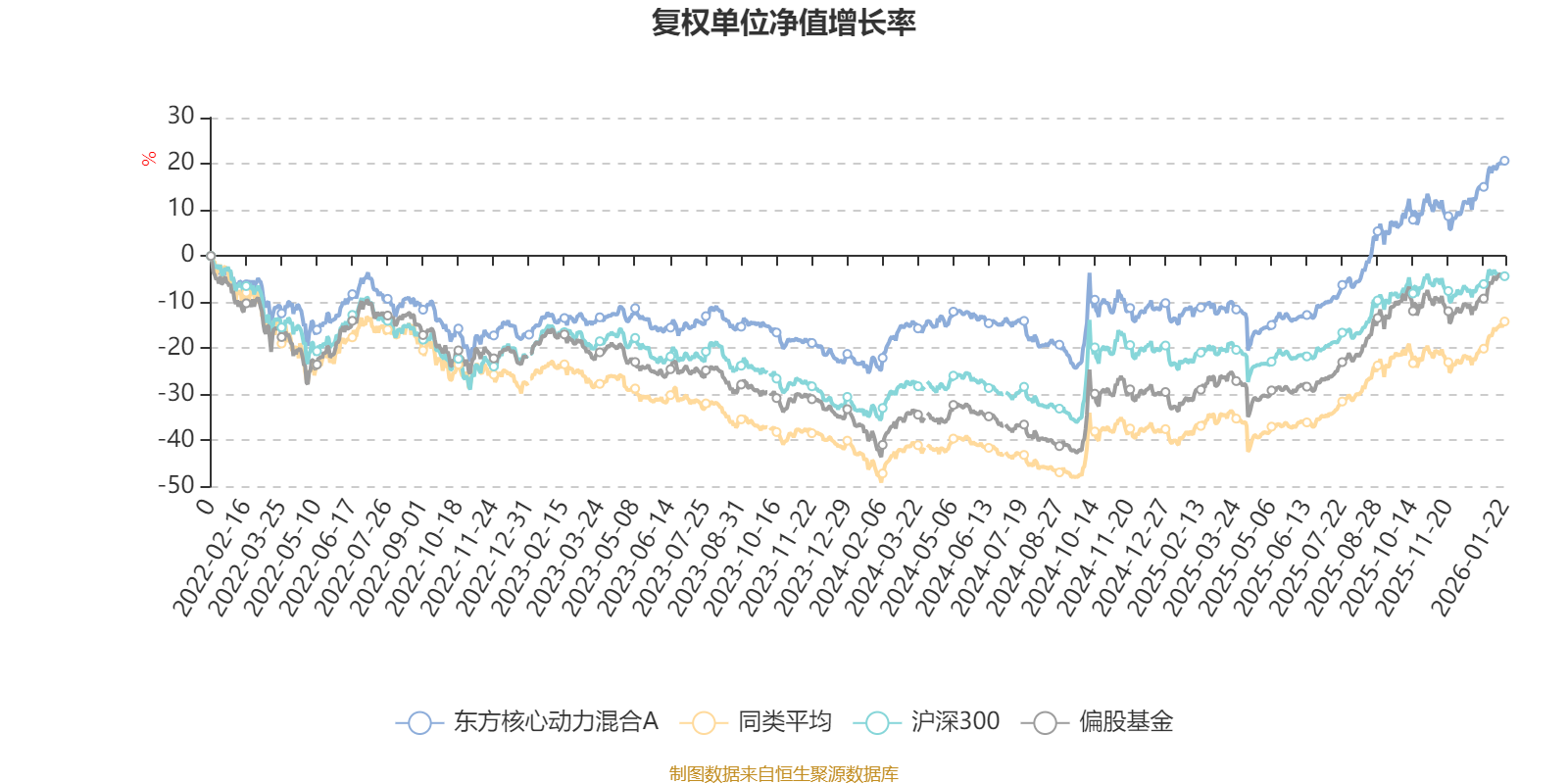 截至1月22日,东方核心动力混合A近三个月复权单位净值增长率为10.78%,位于同类可比基金295/689;近半年复权单位净值增长率为28.73%,位于同类可比基金269/689;近一年复权单位净值增长率为36.55%,位于同类可比基金344/673;近三年复权单位净值增长率为37.52%,位于同类可比基金76/396。