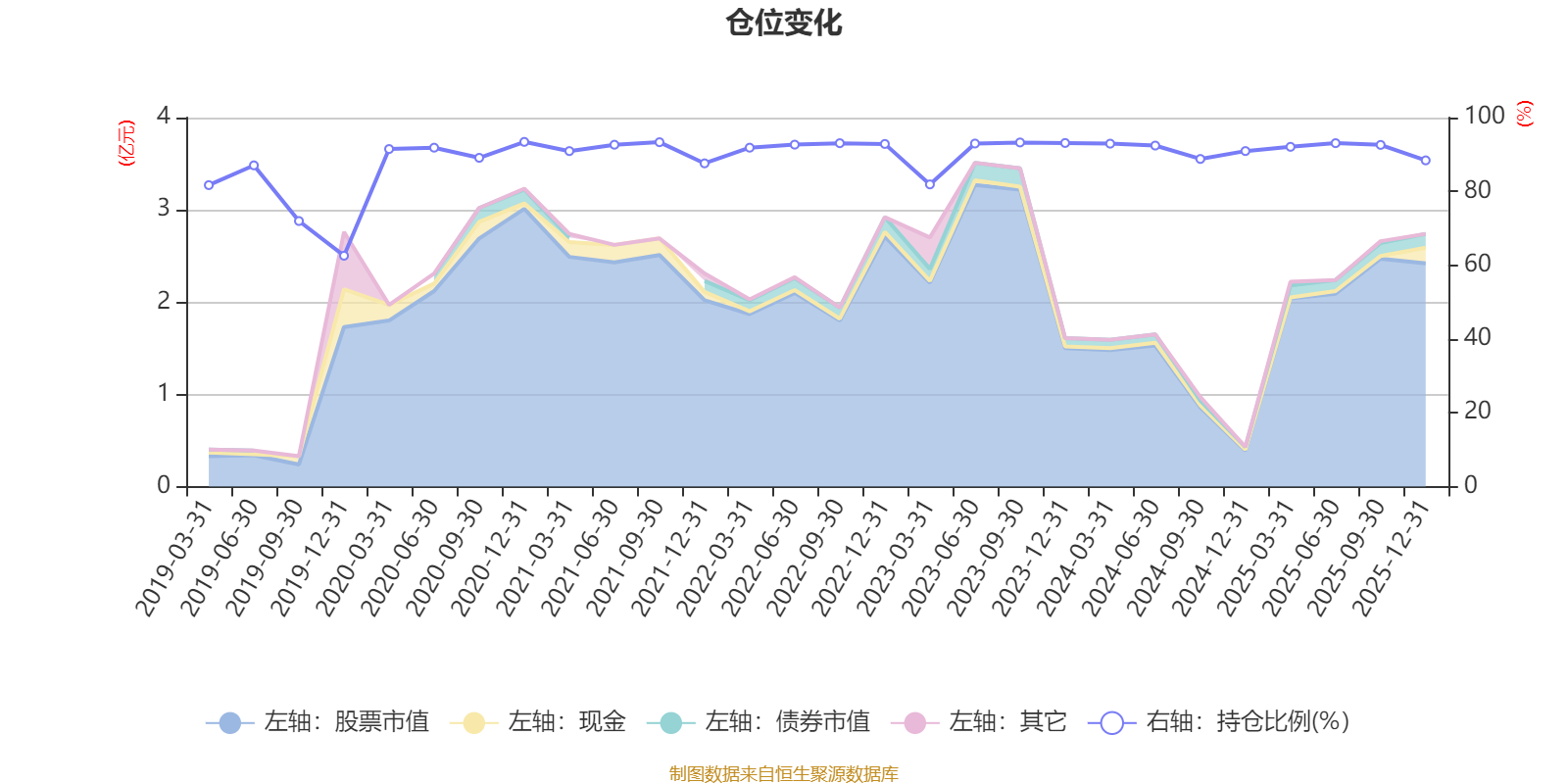 据定期报告数据统计,近三年平均股票仓位为91.04%,同类平均为84.04%。2020年末基金达到93.42%的最高仓位,2019年末最低,为62.57%。