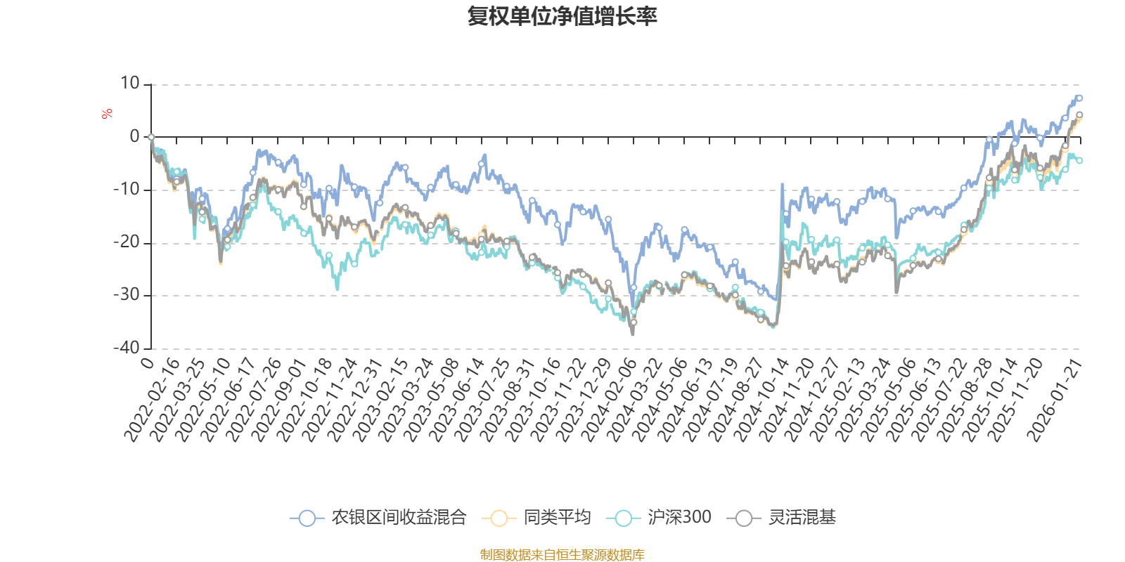 截至1月21日,农银区间收益混合近三个月复权单位净值增长率为6.16%,位于同类可比基金770/1286;近半年复权单位净值增长率为19.15%,位于同类可比基金706/1286;近一年复权单位净值增长率为23.44%,位于同类可比基金842/1286;近三年复权单位净值增长率为14.53%,位于同类可比基金679/1286。