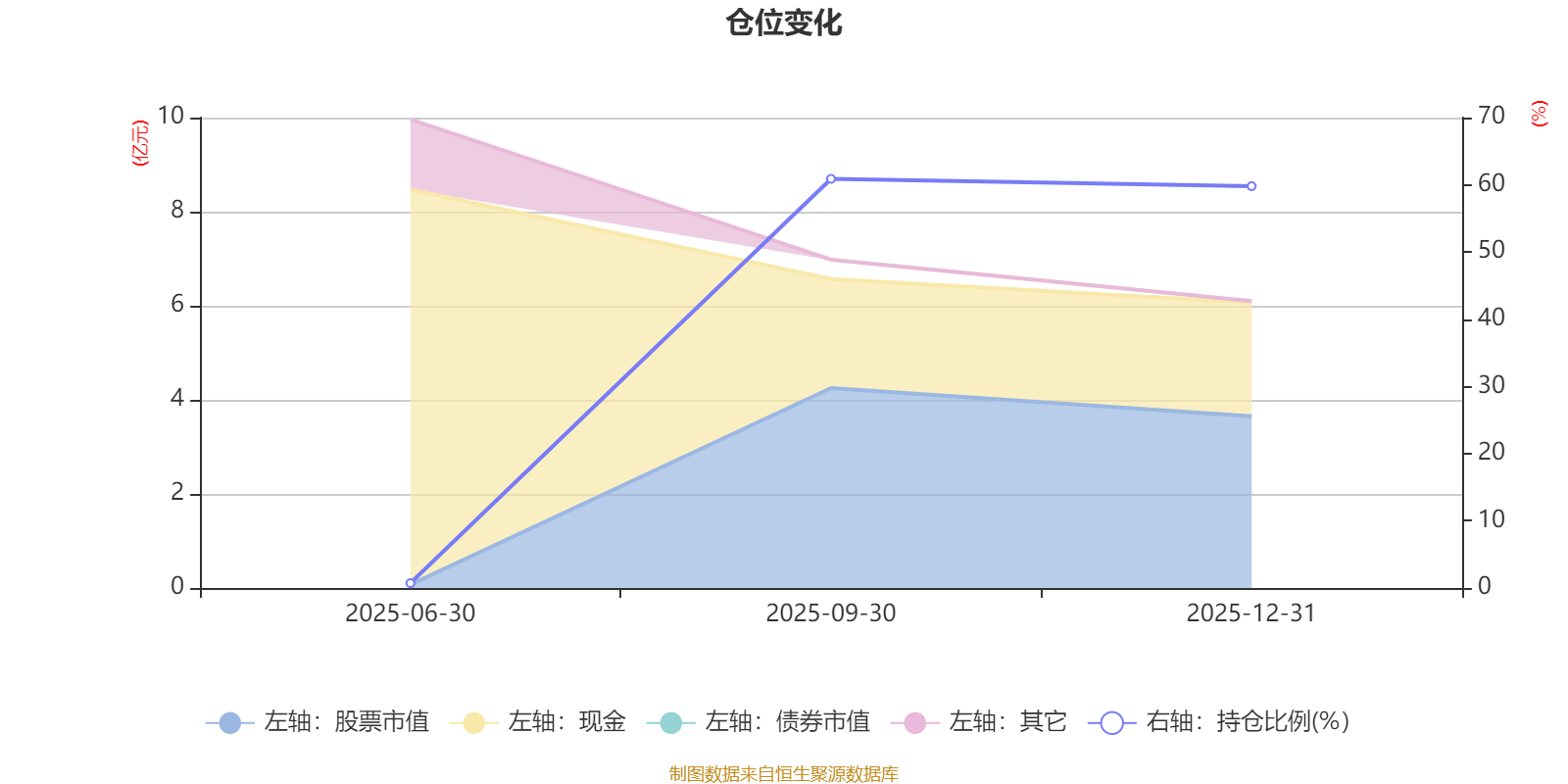 据定期报告数据统计,成立以来平均股票仓位为40.47%,同类平均为86.7%。2025年三季度末基金达到60.89%的最高仓位,2025年上半年末最低,为0.72%。