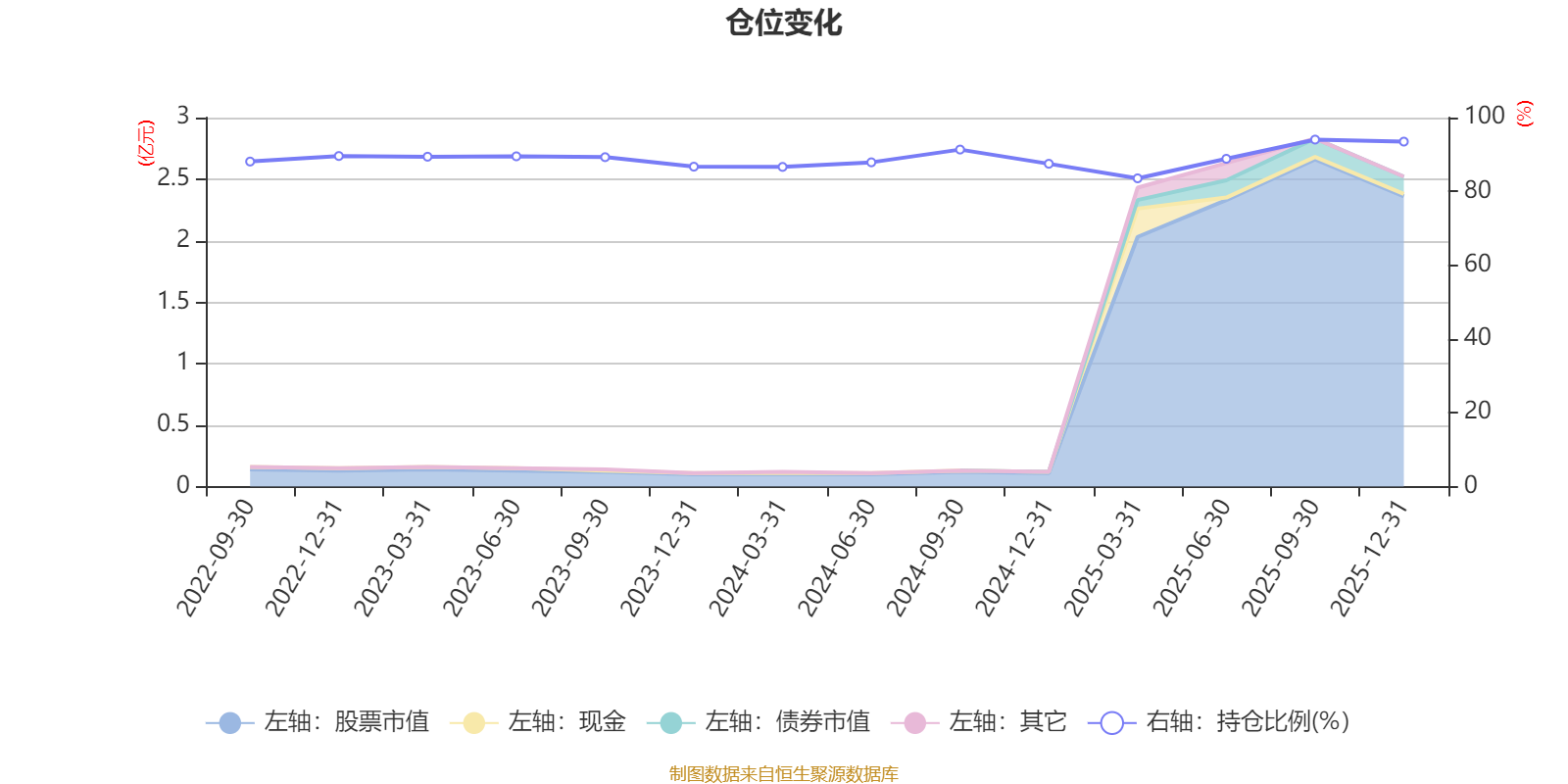 据定期报告数据统计,近三年平均股票仓位为89.01%,同类平均为85.83%。2025年三季度末基金达到94.04%的最高仓位,2025年一季度末最低,为83.54%。