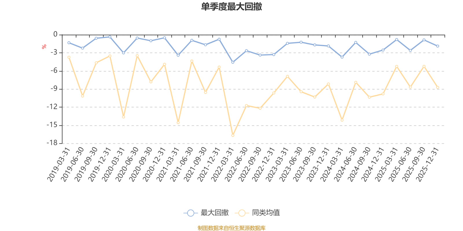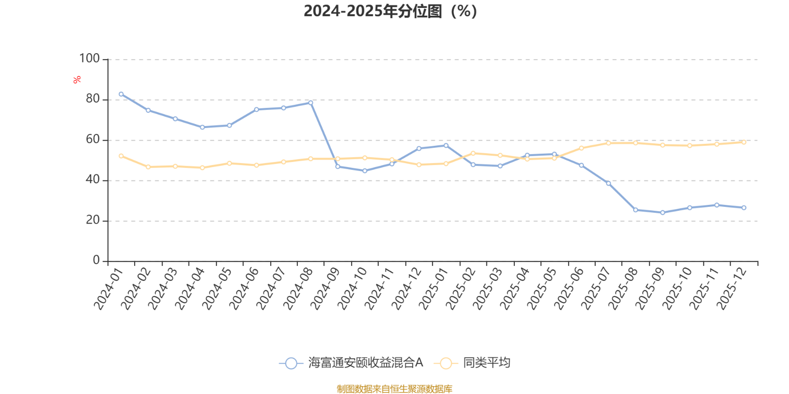 通过所选区间该基金净值增长率分位图,可以观察该基金与同类基金业绩比较情况。图为坐标原点到区间内某时点的净值增长率在同类基金中的分位数。