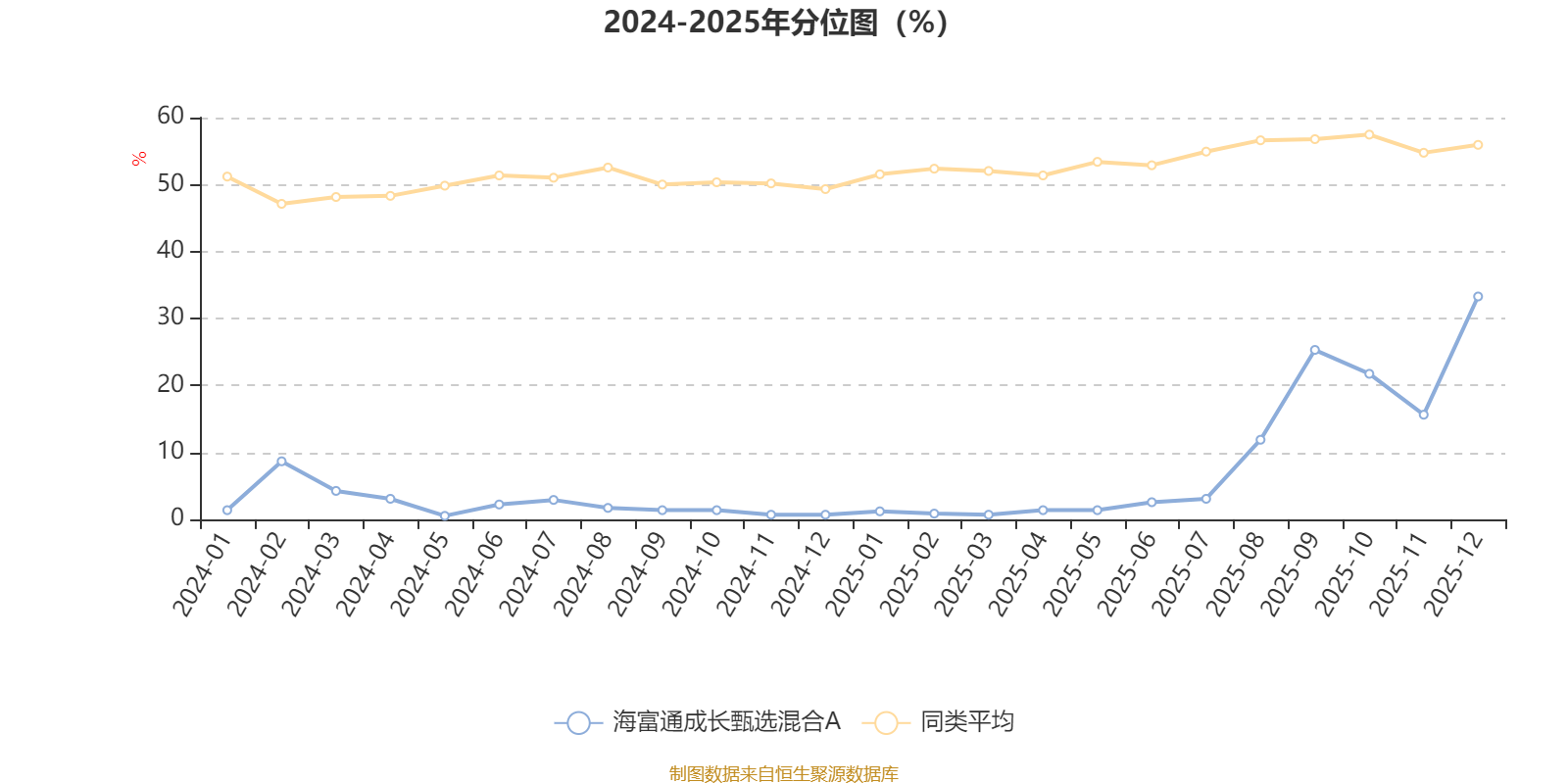 通过所选区间该基金净值增长率分位图,可以观察该基金与同类基金业绩比较情况。图为坐标原点到区间内某时点的净值增长率在同类基金中的分位数。