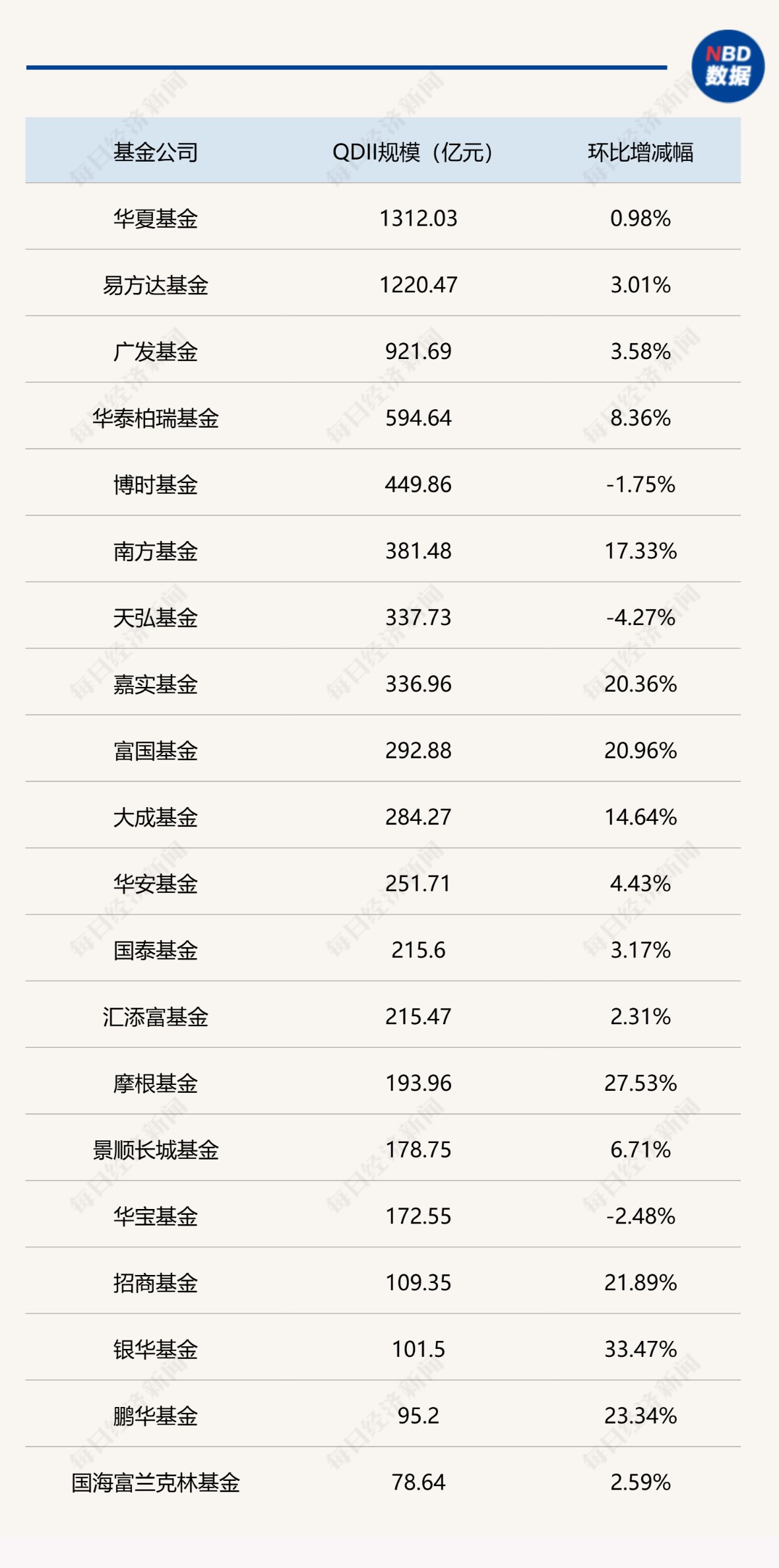 华夏基金QDII规模领跑,银华基金环比增长超30%