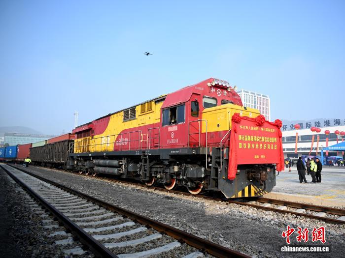 一列国际专列在怀化国际陆港多式联运中心铁路专用线首发。张卓摄