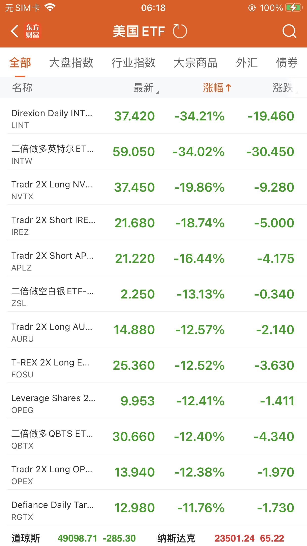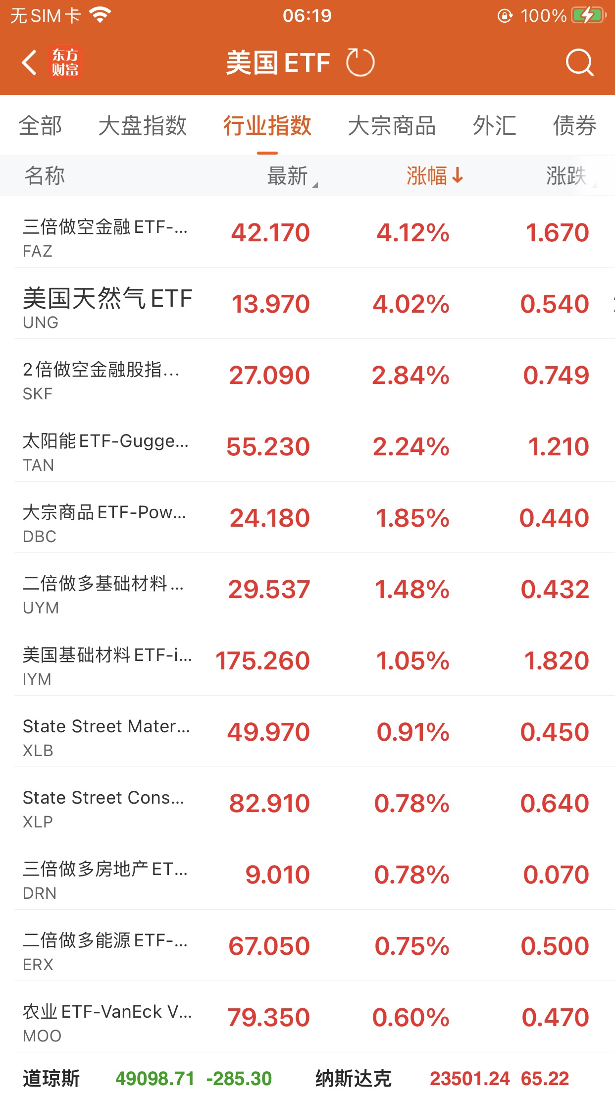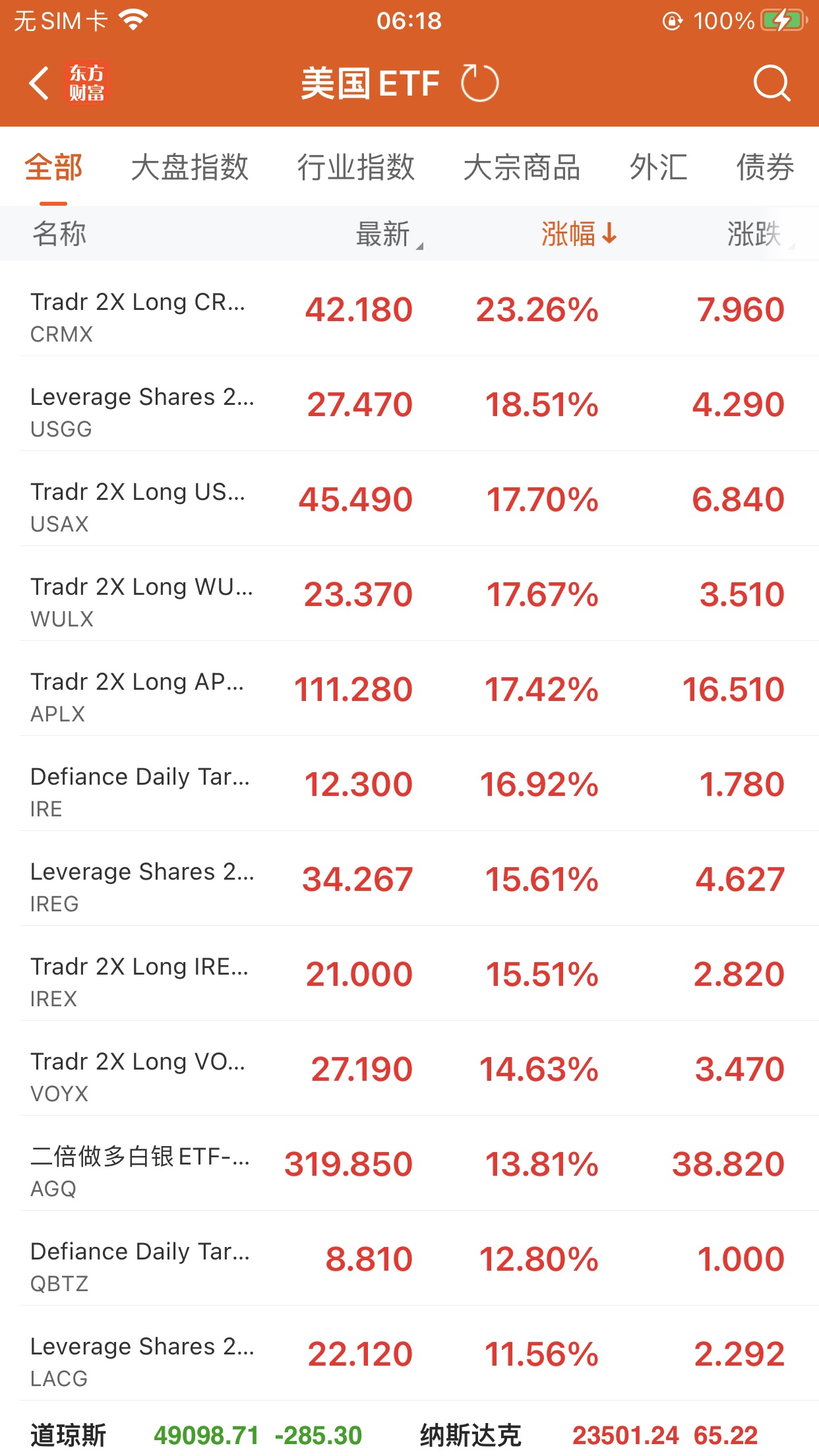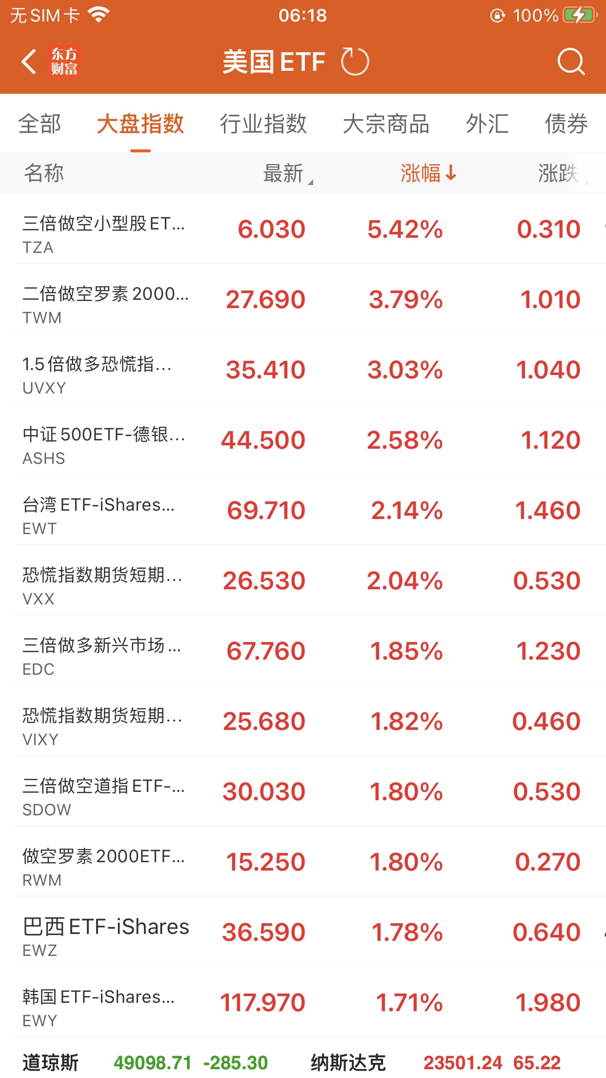 美股大型指数ETF升幅榜Top5