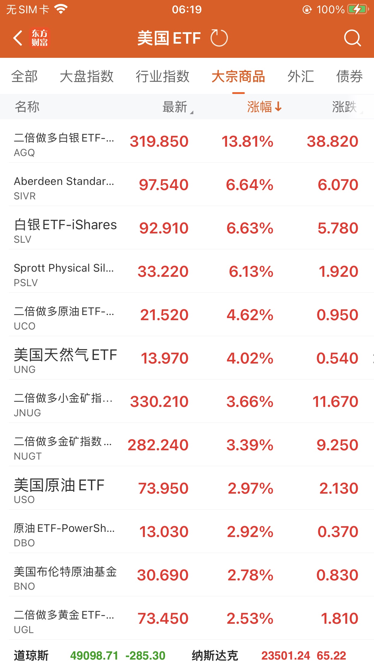 2倍做多白银ETF-ProShares (AGQ.US) 升13.81%,成交额22.26亿美元。