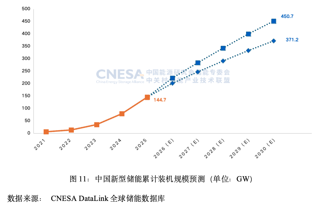 截至2025年12月底,中国新型储能累计装机规模达到144.7 GW,同比增加85%,历史首次突破100 GW,是“十三五”时期末的45倍。