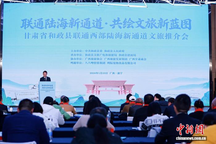 中新网南宁1月24日电 (张广权蒋思蓓)“联通陆海新通道·共绘文旅新蓝图”甘肃省和政县联通西部陆海新通道文旅推介会23日在广西南宁举办。桂陇两地文旅主管部门、行业协会、企业代表齐聚一堂,共商合作,探索文旅发展新路径。