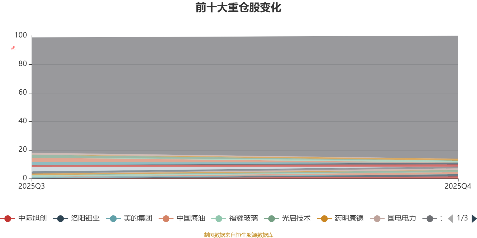 截至2025年四季度末,基金十大重仓股分别是紫金矿业、中国海油、洛阳钼业、中国平安、中际旭创、光启技术、荃银高科、国电电力、新易盛、大连重工。