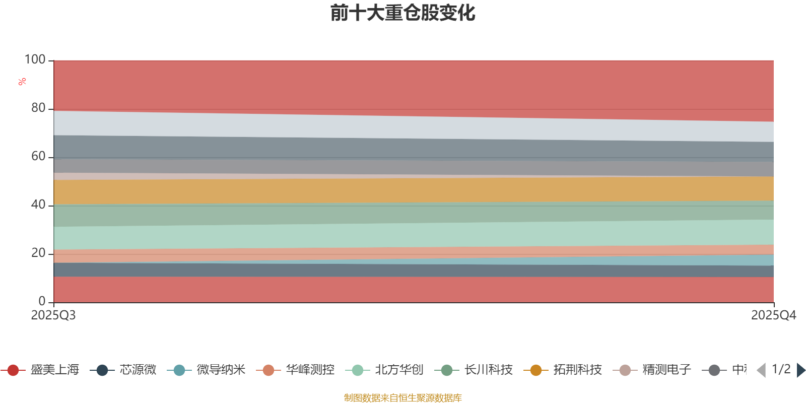 该基金持股集中度较高。截至2025年四季度末,基金十大重仓股分别是盛美上海、北方华创、拓荆科技、华海清科、中微公司、长川科技、中科飞测、芯源微、微导纳米、华峰测控。